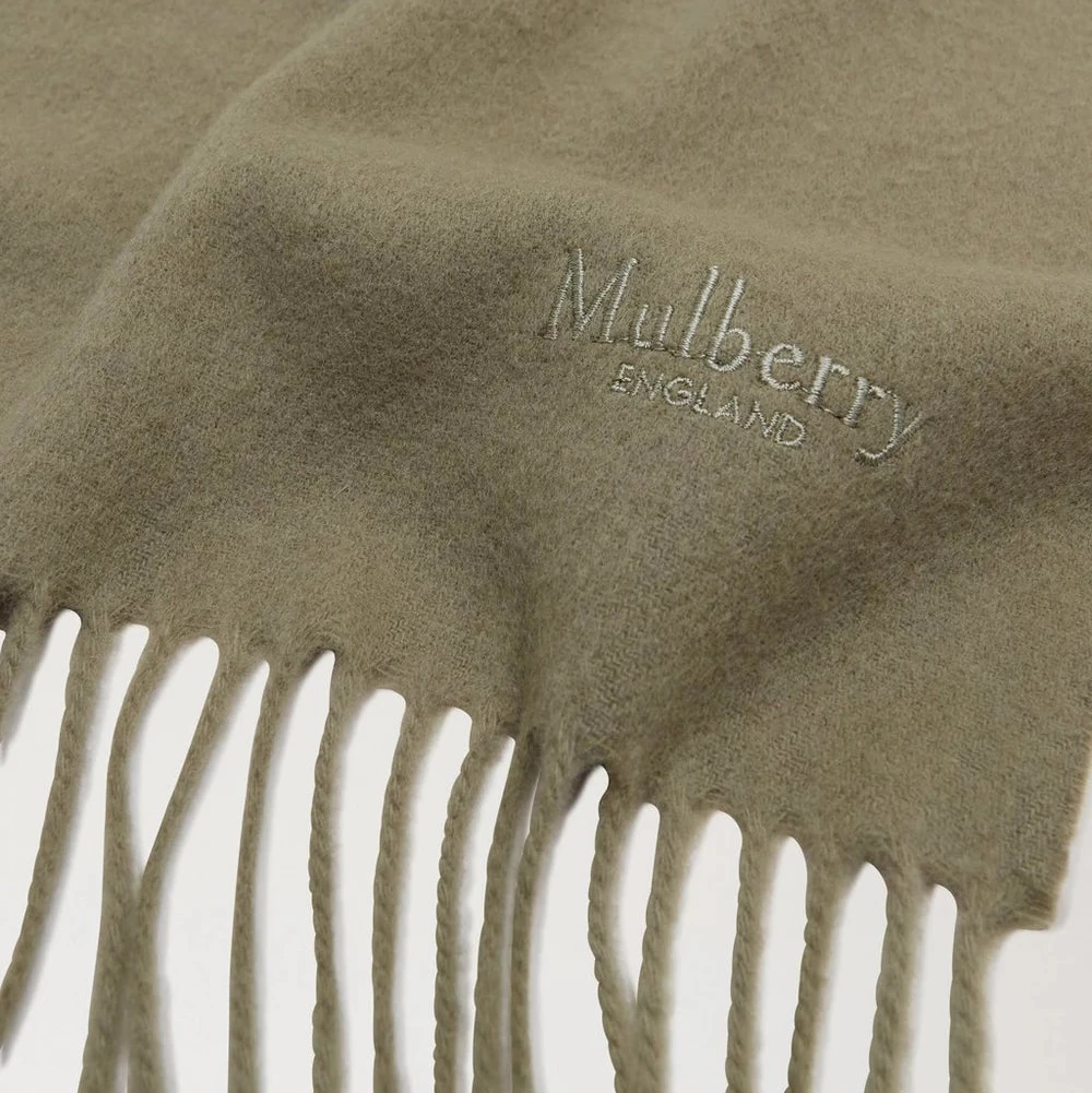 Durch das schlichte, einfarbige Design lässt sich der Schal leicht mit jeder Garderobe kombinieren, während die feinen Fransen usw bestickt MulberryLogo verleiht einen dezenten, exklusiven Ausdruck. Hergestellt im Vereinigten Königreich mit Fokus auf Qualität und klassischer Handwerkskunst.
