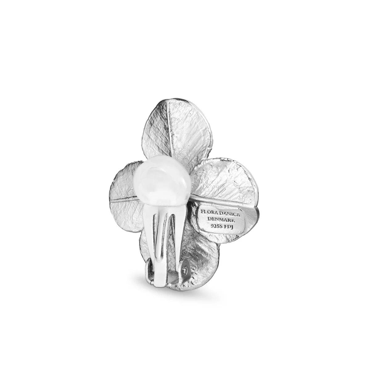 Flora Danica Ohrclips mit vierblättrigem Kleeblatt, Silber