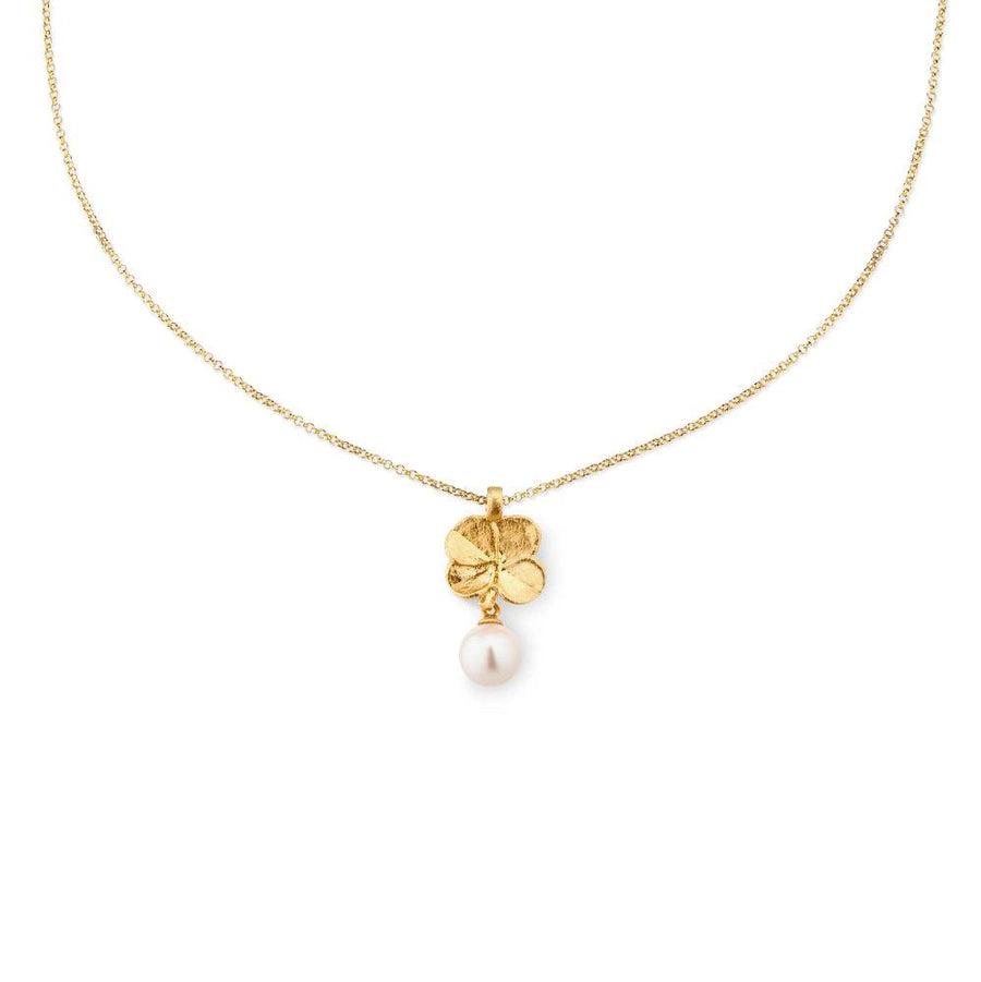 Flora Danica Vierblättriges Kleeblatt-Perlenkette aus vergoldetem Silber:
