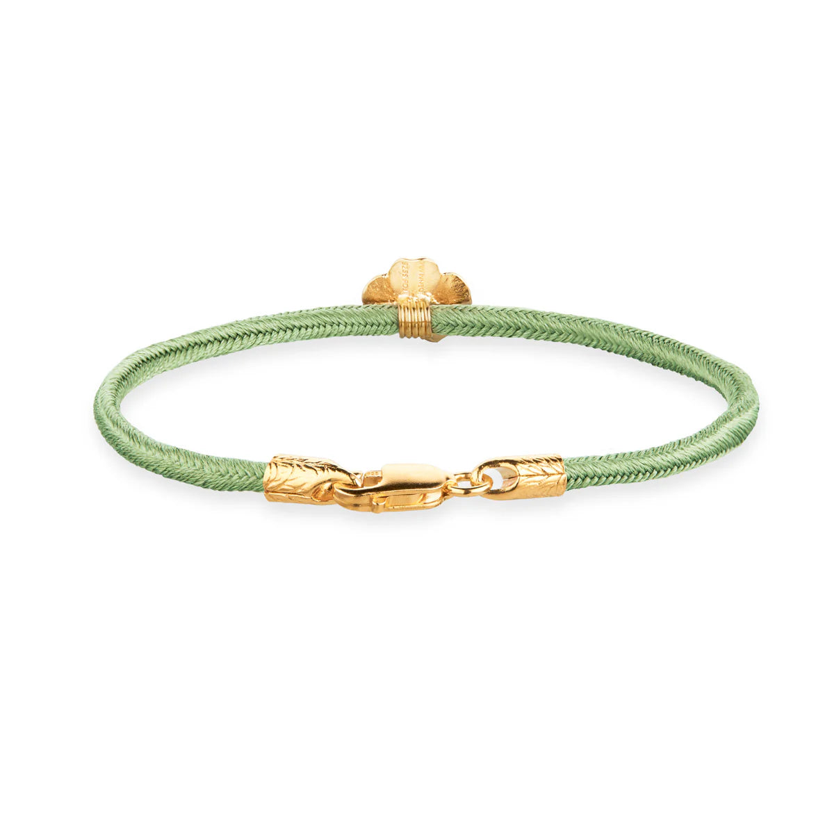 Flora Danica Vierblättriges Kleeblatt-Seidenarmband Hellgrün – vergoldet