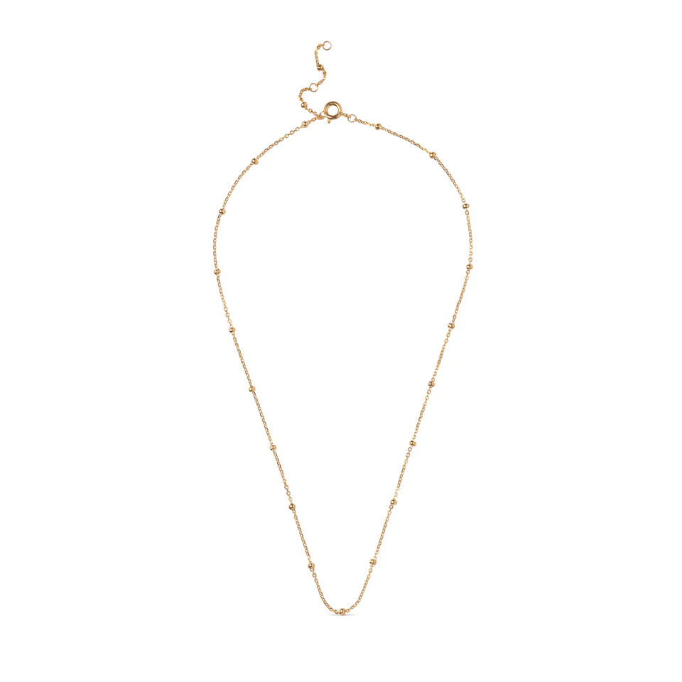 Perlenkette von Enamel ist eine feine und feminine Kette, verziert mit kleinen, dezenten Kugeln, die Ihrem Look einen Hauch von Exklusivität verleihen. Das minimalistische Design macht die Halskette perfekt für den täglichen Gebrauch, lässt sich aber auch leicht mit anderem Schmuck kombinieren, um einen persönlicheren Ausdruck zu erzielen.