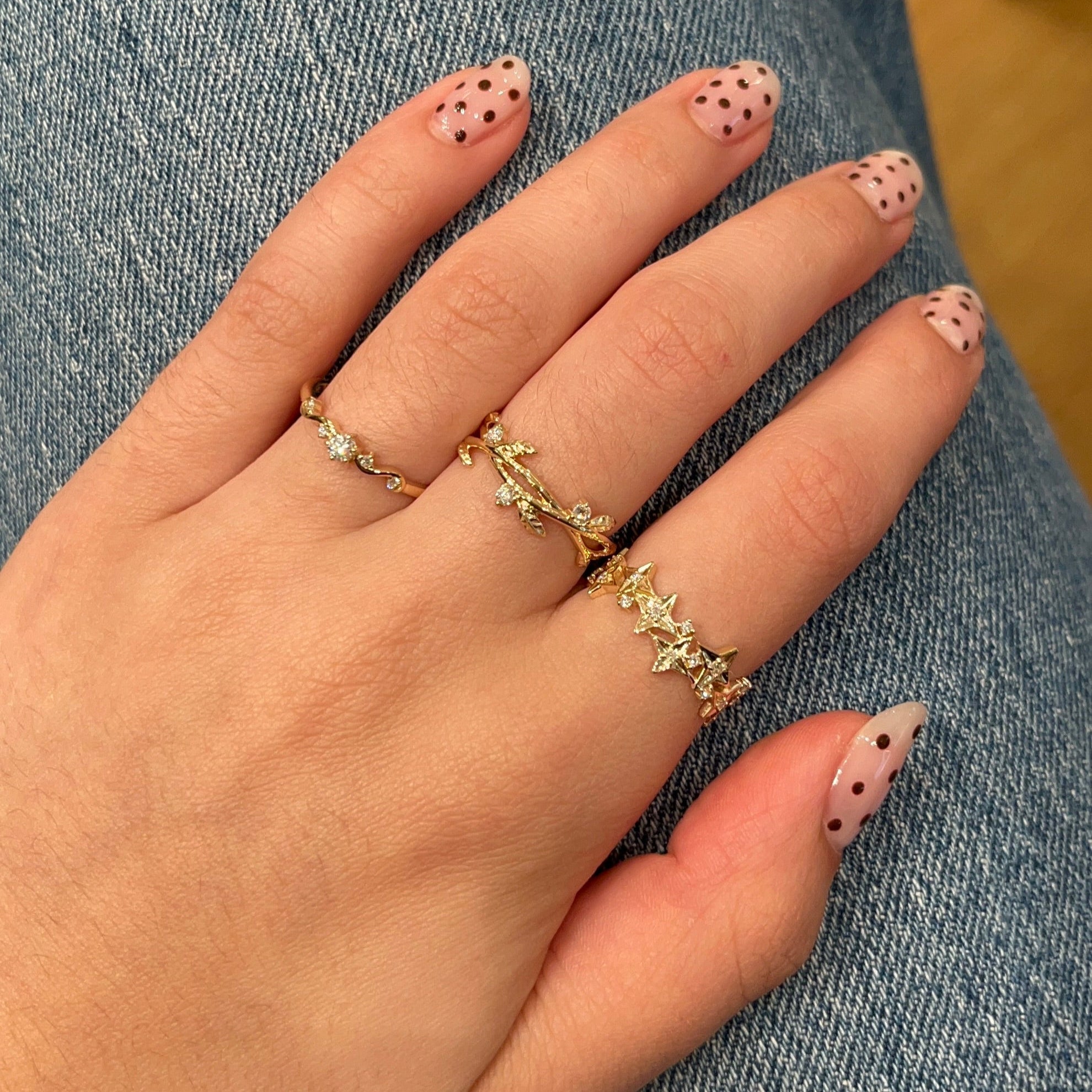 Der Ring Mads Z Isaline ist eine Hommage an die organischen Bewegungen und die zeitlose Eleganz der Natur. In der Mitte funkelt ein Diamant im Brillantschliff, flankiert von zwei kleineren Diamanten auf beiden Seiten. Zusammen ergeben sie ein harmonisches Spiel aus Licht und Balance, das dem Ring einen exklusiven, aber dennoch leichten und femininen Ausdruck verleiht.