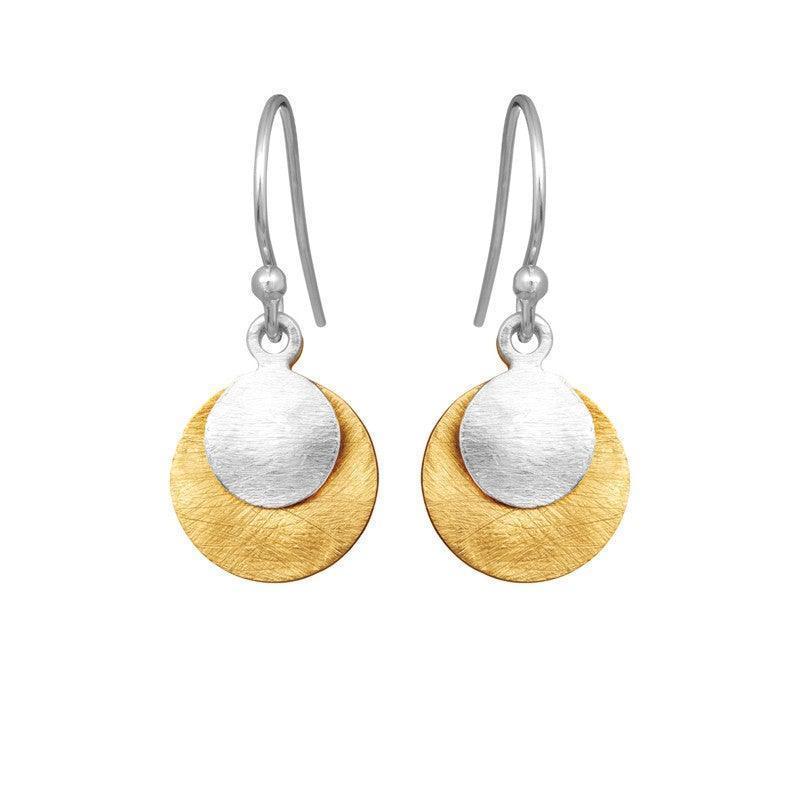 Wunderschöne, stilvolle Ohrringe von Susanne Friis Bjørner, mit zwei Münzen in mattem Silber und vergoldetem Silber.