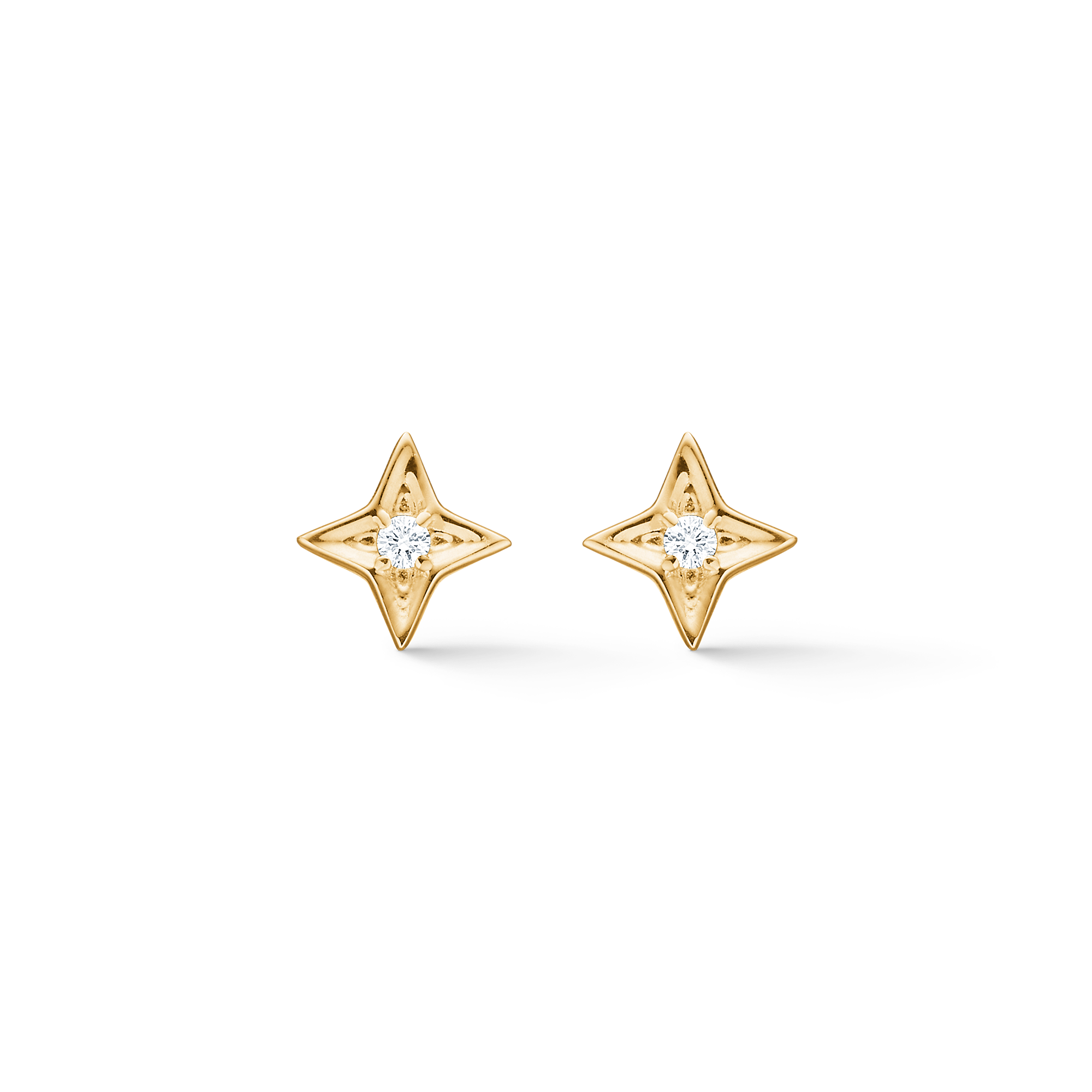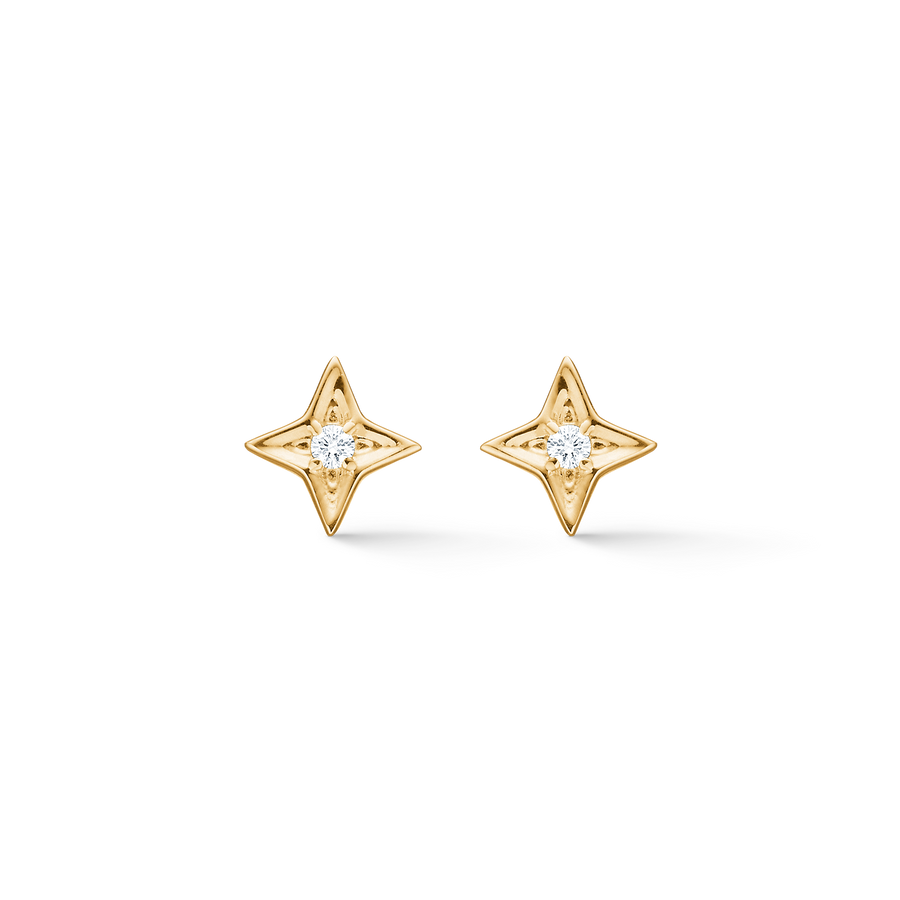 Die Vesper-Ohrringe aus 14 Karat Gold mit 0,03 ct. Das brillante W.SI vereint geometrische Klarheit und poetische Symbolik.
