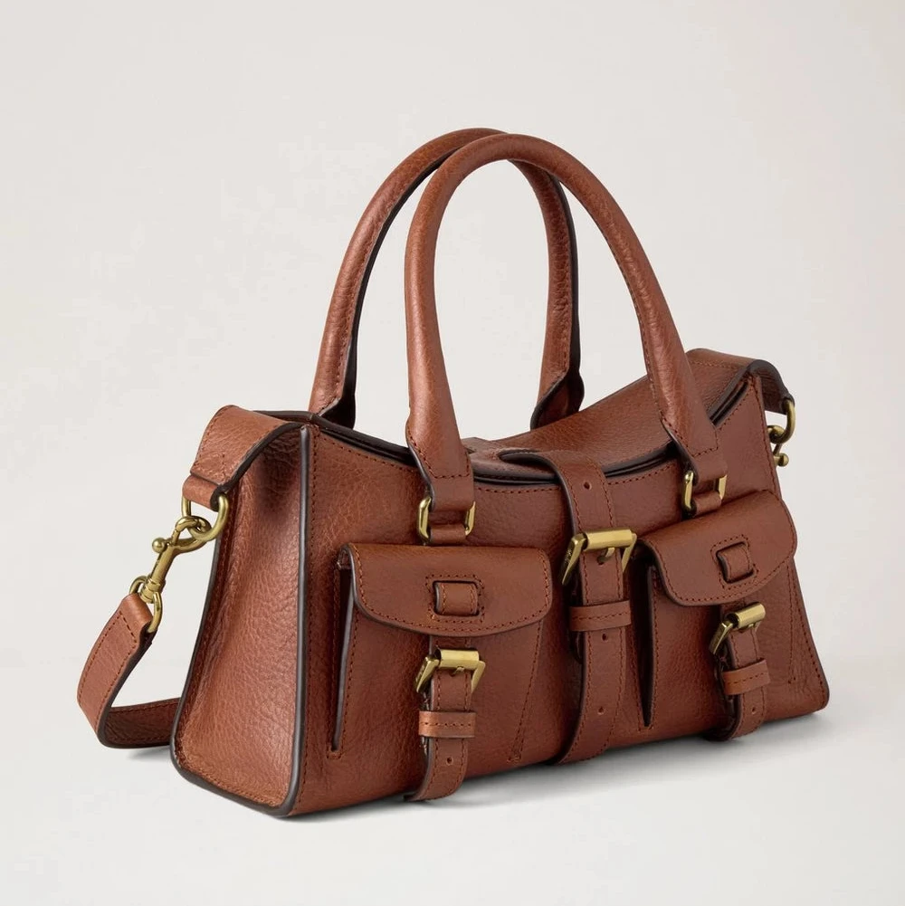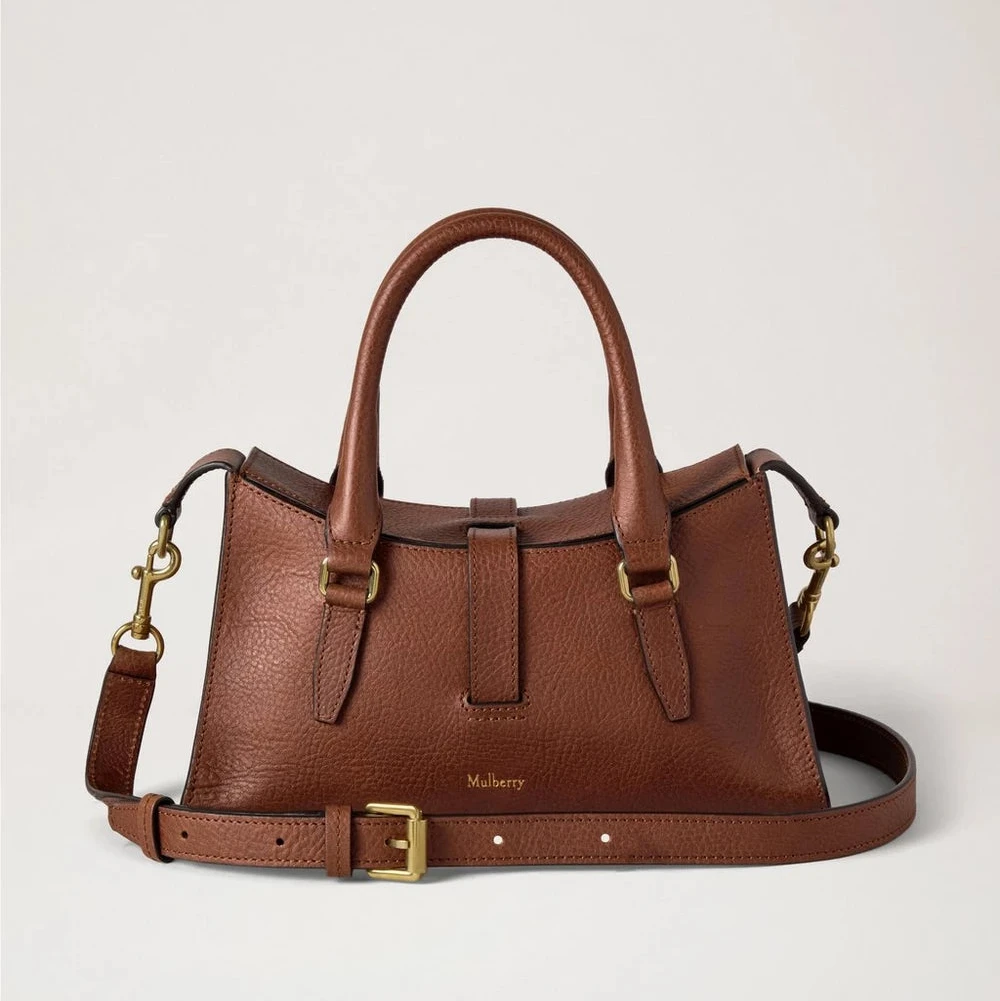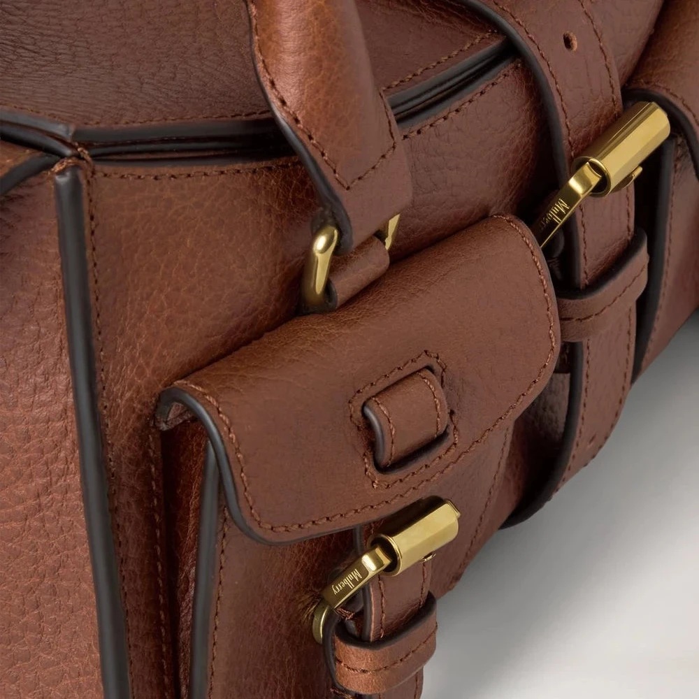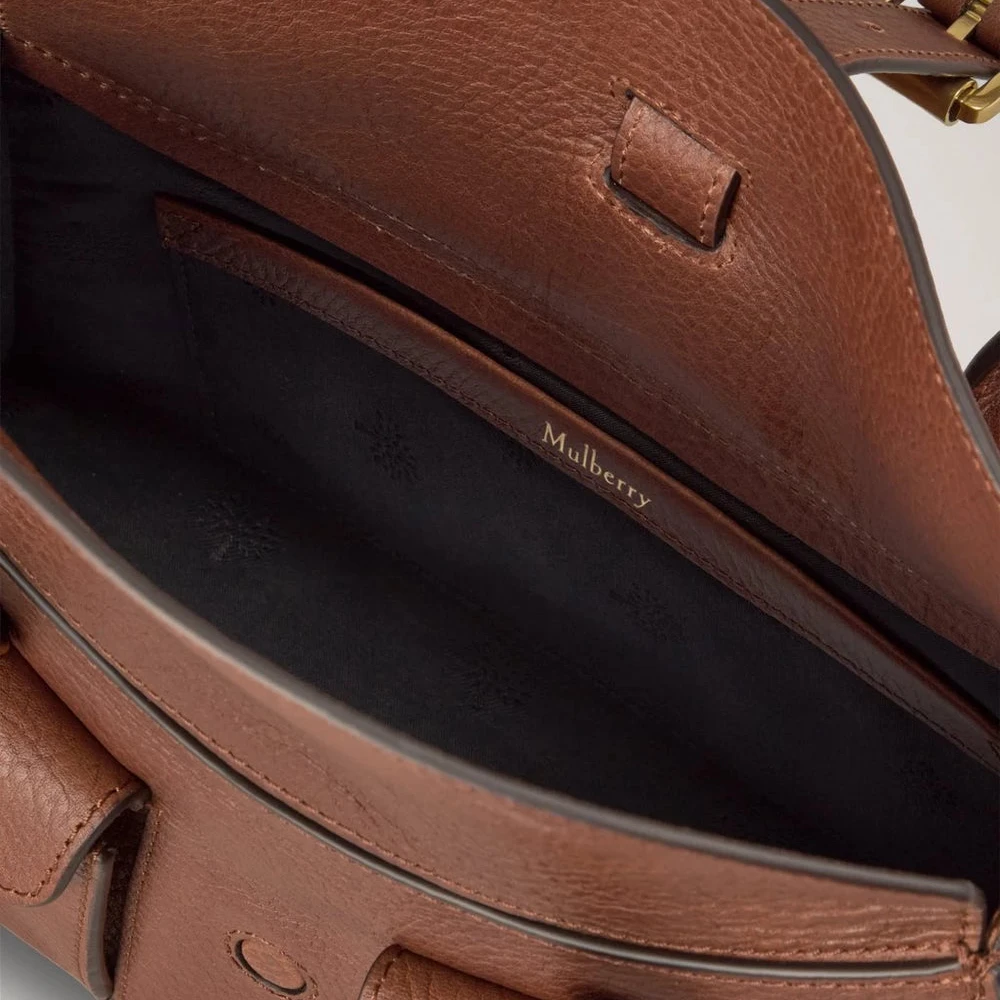 Die Tasche ist aus Mulberrys Heritage NVT-Leder (natürlich pflanzlich gegerbt) gefertigt – einer luxuriösen, natürlich gegerbten Lederqualität, die mit der Zeit eine schöne Patina entwickelt. Die Farbe Eiche wird immer intensiver und charaktervoller, je häufiger die Tasche verwendet wird.