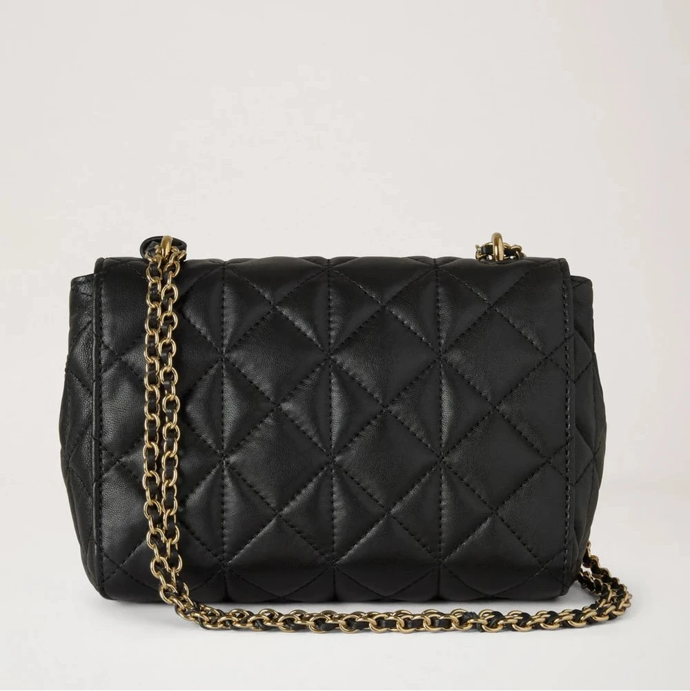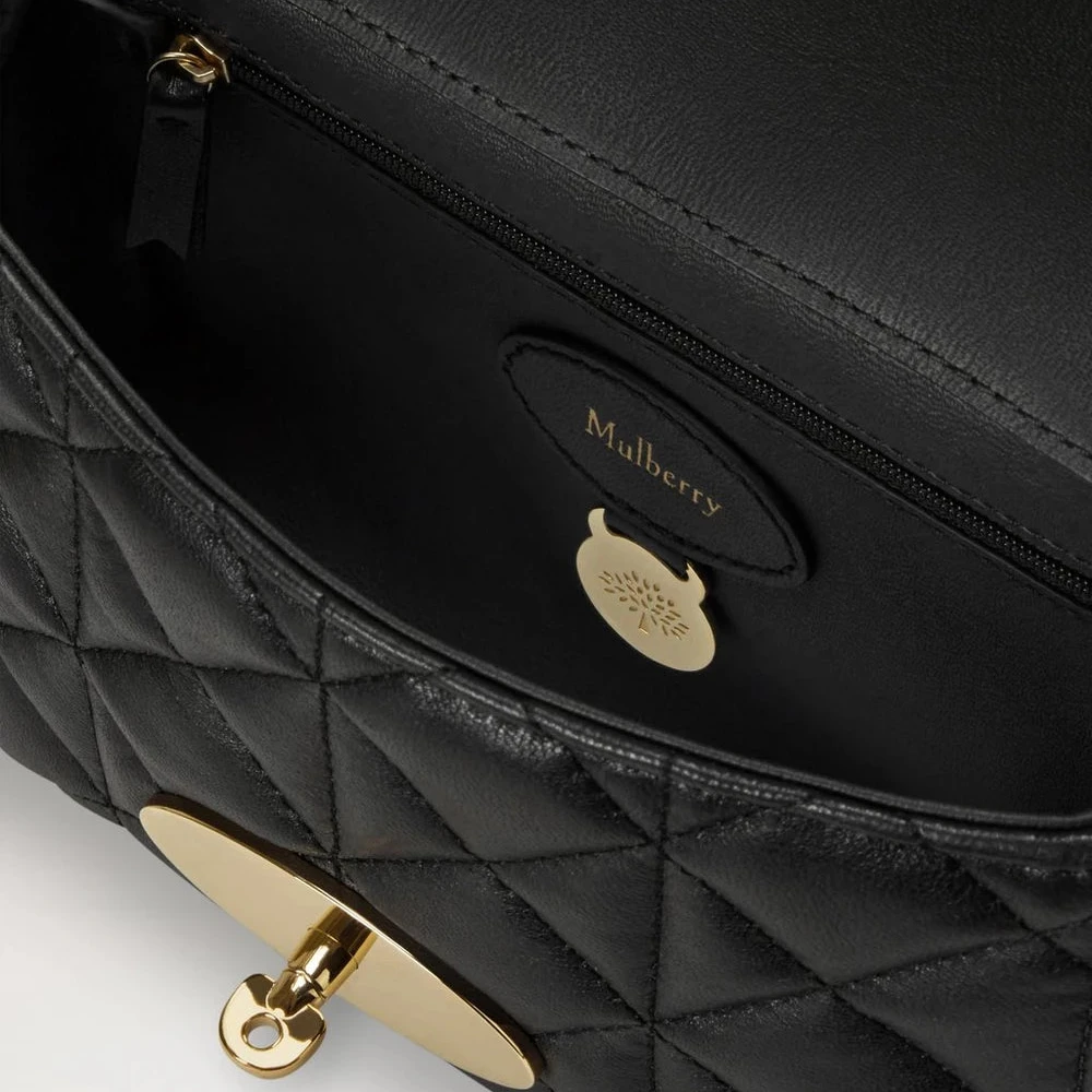 Lily ist aus weichem, rautengestepptem Leder gefertigt, das einen raffinierten und exklusiven Look verleiht. Es ist mit Mulberrys charakteristischem Postman's Lock und einem hängenden Lederanhänger mit verstecktem Vorhängeschloss verziert, der das elegante Design vervollständigt. Ein zeitloser Klassiker, perfekt für den täglichen Gebrauch und besondere Anlässe.