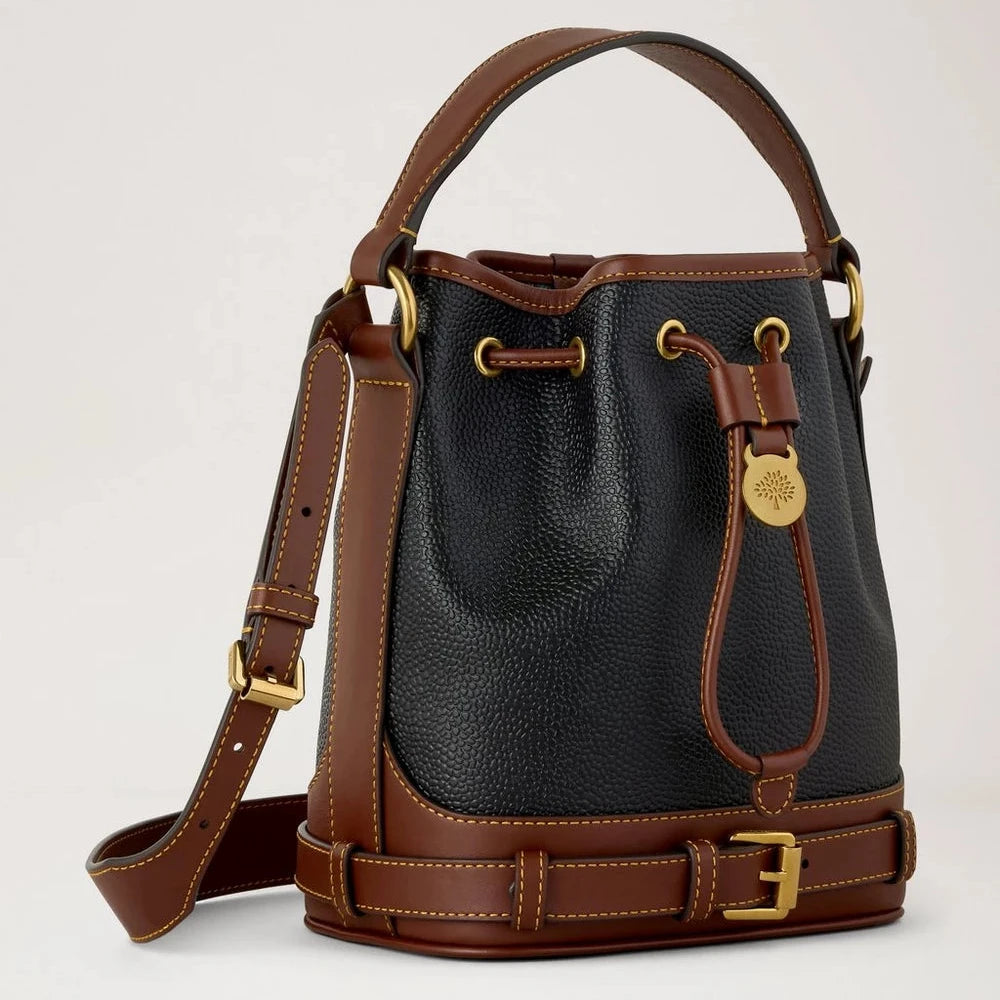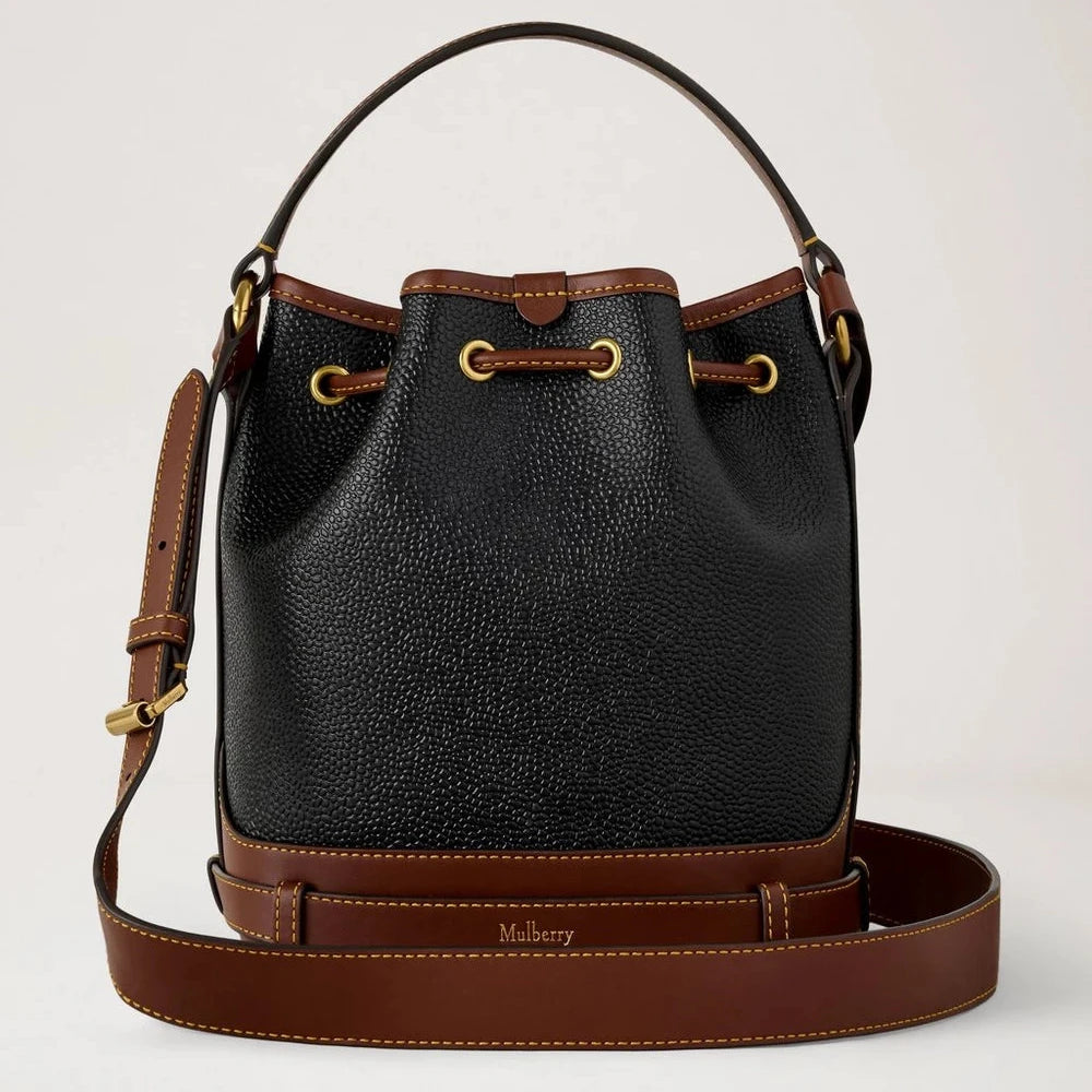 Mulberry Small Scotchgrain Bucket Black & Cognac Bio-Based Scotchgrain