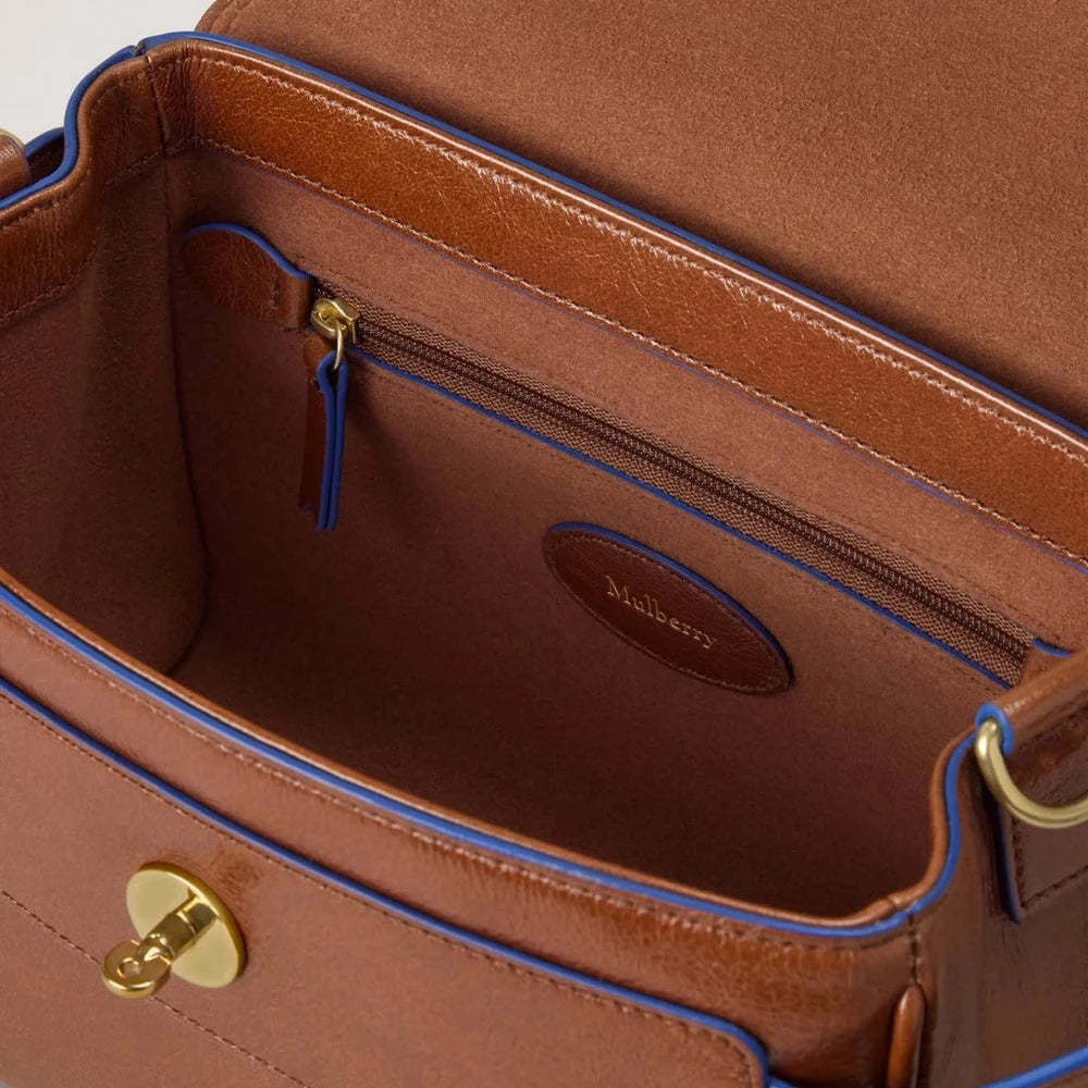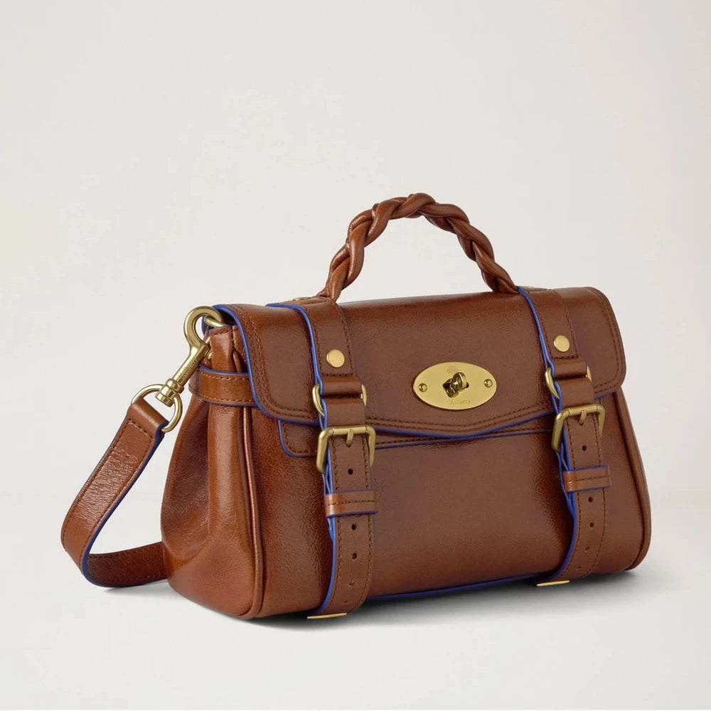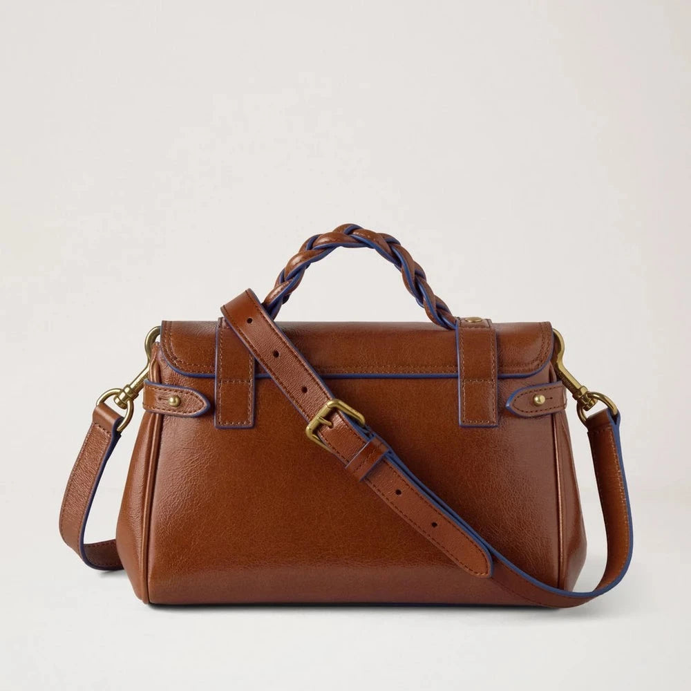 Mulberry Mini Alexa Oak & Pigment Blue Smooth Glossy Leather Tasche