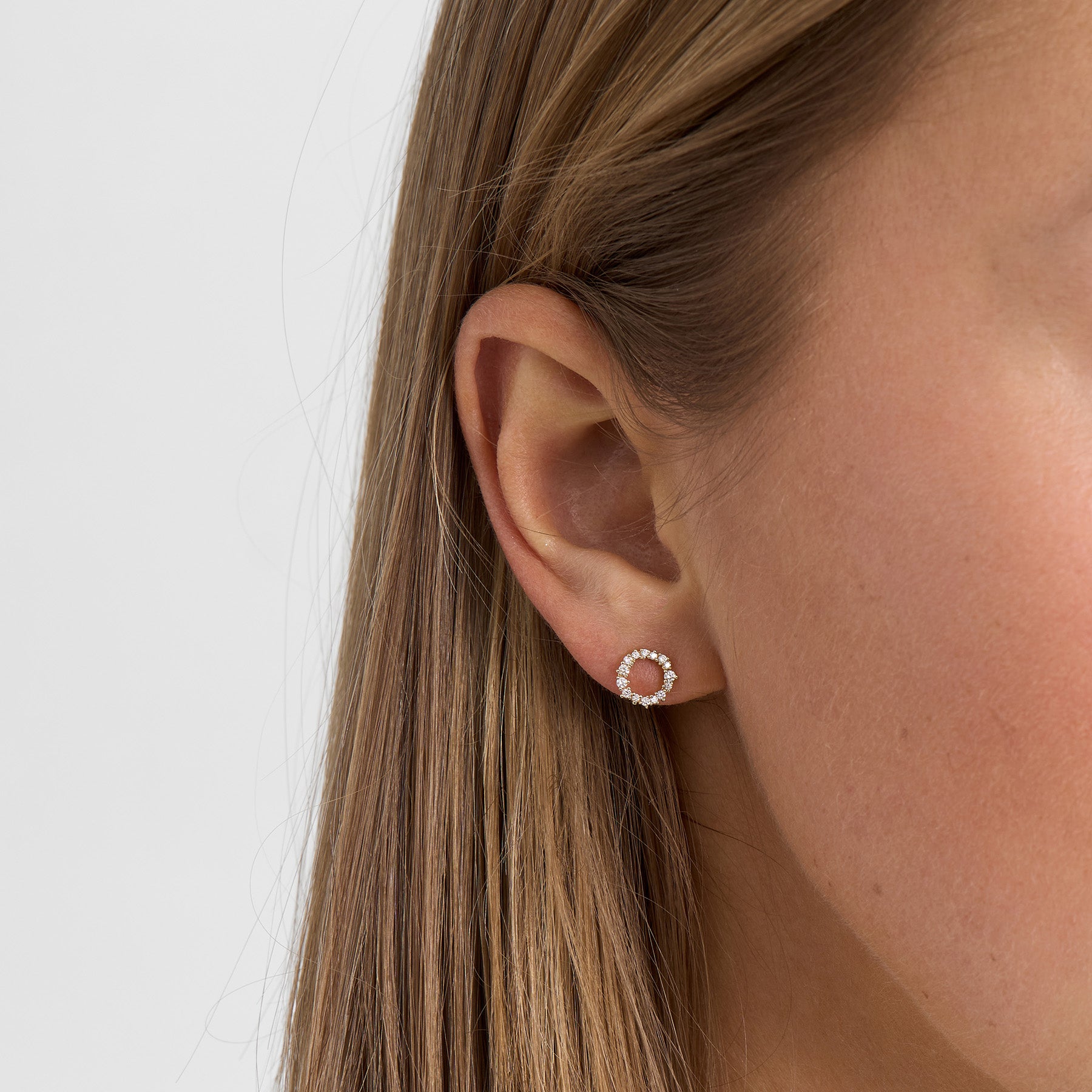 Das warme 14-Karat-Gold unterstreicht die klare Brillanz des Diamanten und schafft eine feine Balance zwischen Exklusivität und Schlichtheit. Die offene Kreisform symbolisiert Ganzheit und Ewigkeit und macht die Ohrringe sowohl feminin als auch klassisch.