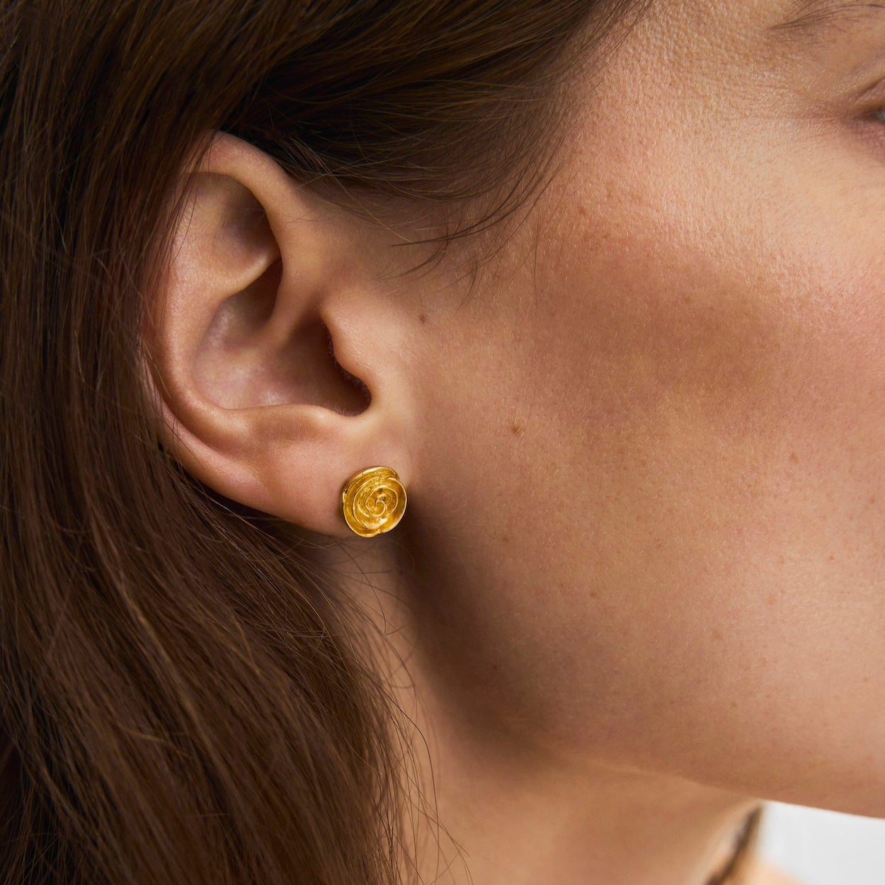 Die warme Vergoldung betont den organischen Stil und verleiht den Ohrringen einen sanften und romantischen Look. Sie eignen sich perfekt als elegantes Detail für sich und lassen sich wunderbar mit anderen Ohrringen kombinieren, um einen persönlicheren Look zu erzielen.