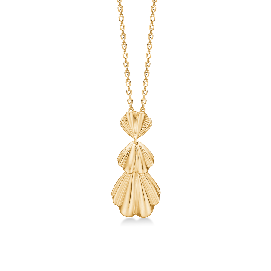 Ein exklusiver Anhänger i 14 Karat Gold, wo weiche Falten und organische Formen in einem zeitlosen Design aufeinandertreffen. Der Samtanhänger ist inspiriert von den samtigen Bewegungen der Natur, wo Licht und Schatten ruhig übereinander gleiten. Durch die fächerförmigen, dreiteiligen Falten entsteht eine skulpturale Silhouette, die das Licht aus jedem Blickwinkel unterschiedlich reflektiert – ein Schmuckstück mit Tiefe, Charakter und Eleganz zugleich.