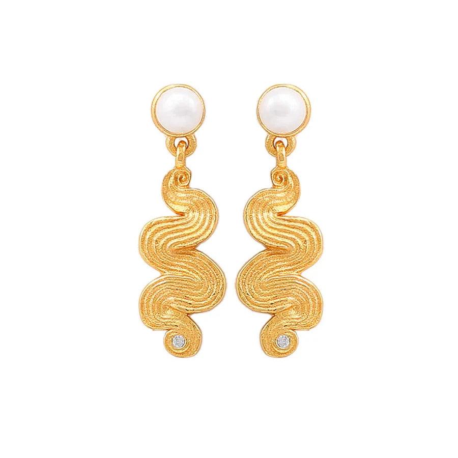 - Design: Elegante Perlenohrringe mit Wellendesign und Zirkonia-Detail