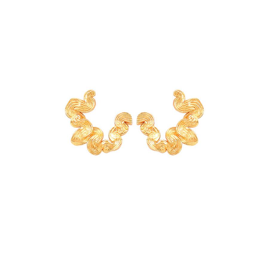 Hultquist Audrey Petite Studs sind eine elegante und moderne Version von Ohrsteckern. Diese aus 18 Karat vergoldetem 925er Sterlingsilber handgefertigten Ohrringe haben ein wunderschönes Wellendesign, das ihnen einen luxuriösen und dynamischen Look verleiht. Die Ohrstecker haben einen Durchmesser von 1,3 cm, wodurch sie sowohl ein Blickfang als auch ein angenehmer Tragekomfort sind. Perfekt, um jedem Stil eine raffinierte Note zu verleihen.