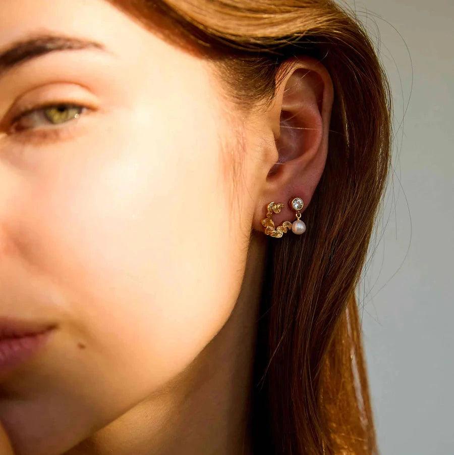Hultquist Harper Petite Ohrringe sind eine schöne und schlichte Kombination aus klassischer Perle und funkelndem Zirkonia. Die aus 18 Karat vergoldetem 925er Sterlingsilber handgefertigten Ohrstecker haben oben einen runden Zirkonia, der elegant in eine wunderschöne, runde Süßwasserperle übergeht. Mit einer Länge von 1,2 cm stellen diese Ohrstecker die perfekte Balance zwischen dezenter Eleganz und stilvollem Glamour dar und eignen sich sowohl für den Alltag als auch für besondere Anlässe.