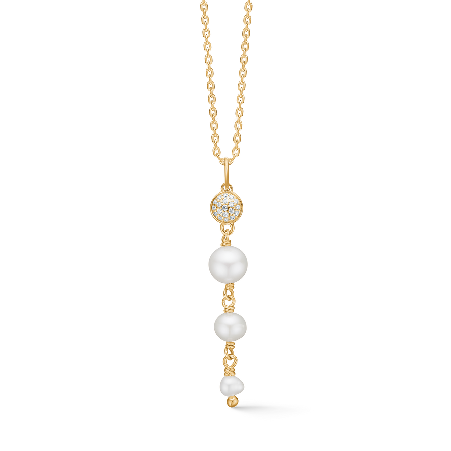 Mads Z Dome-Anhänger aus 14 Karat Gold mit weißen Zuchtperlen und 0,07 ct. Brillanten W.SI – ohne Kette: