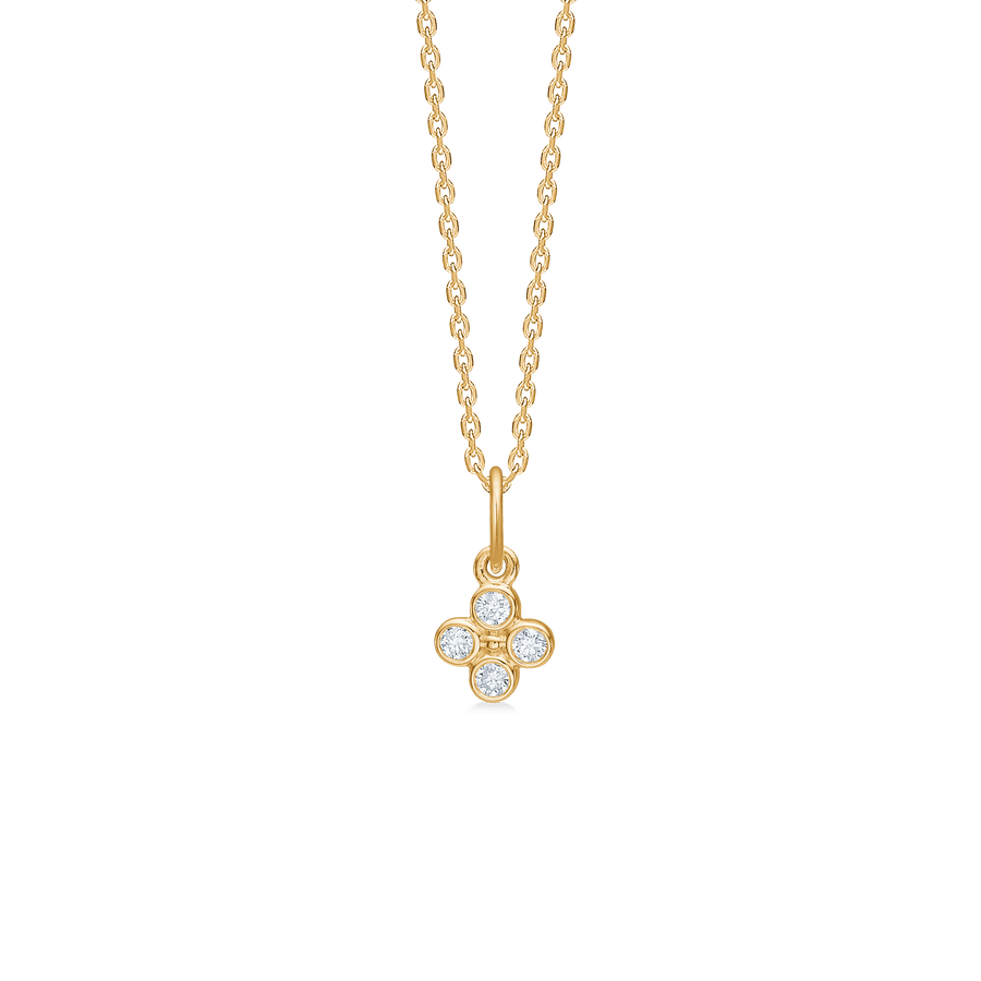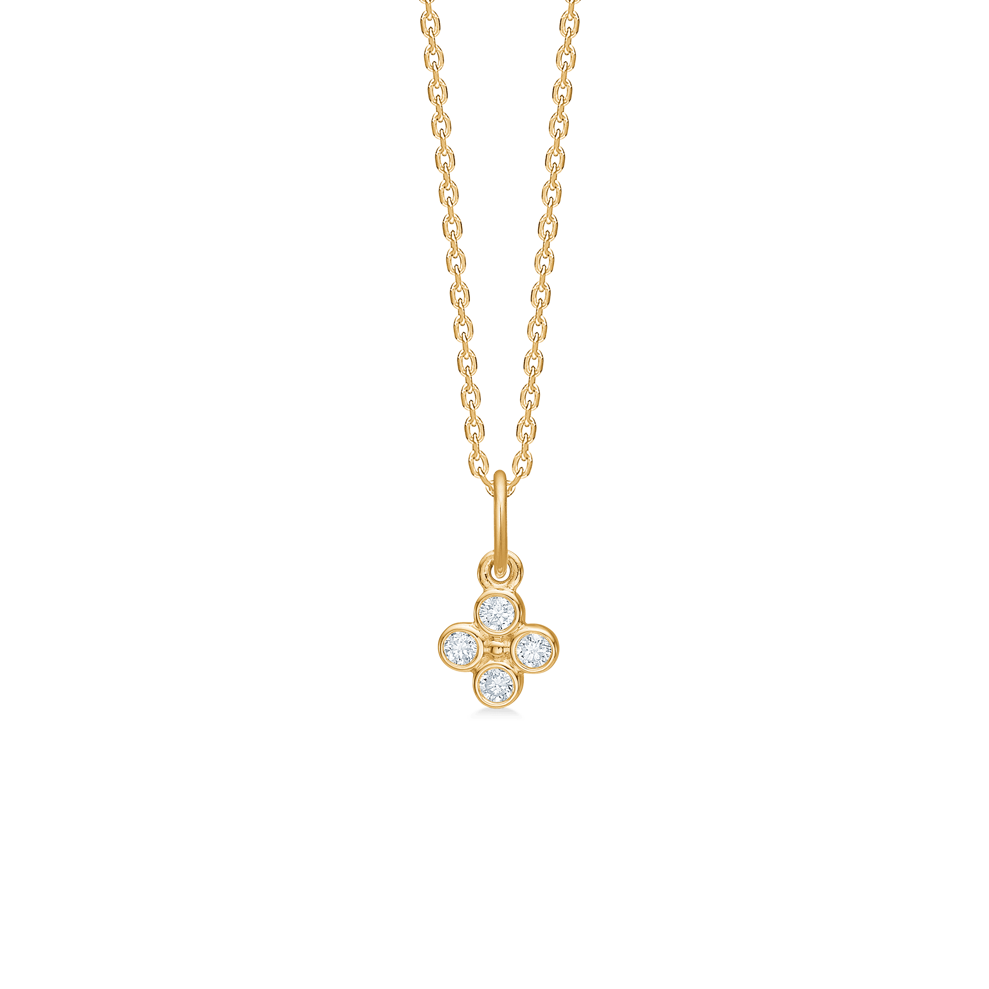 Sophias Bloom-Anhänger ist ein elegantes und zeitloses Schmuckstück, das Raffinesse und Schönheit ausstrahlt. Hergestellt aus 14 Karat Gold und verziert mit 0,12 ct. Der Anhänger besteht aus Brillanten (W.Si) und ist mit fünf funkelnden Steinen im Diamantschliff gestaltet, die die Schönheit der Naturblumen symbolisieren. Dieses Schmuckstück eignet sich perfekt als persönliches Statement oder als Geschenk für jemanden, der Ihnen am Herzen liegt.