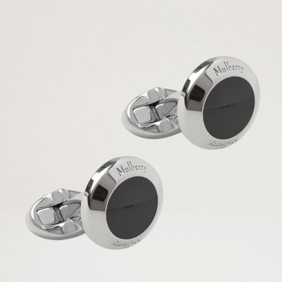 Mulberry Manschettenknöpfe aus versilbertem Messing mit schwarzer Emaille