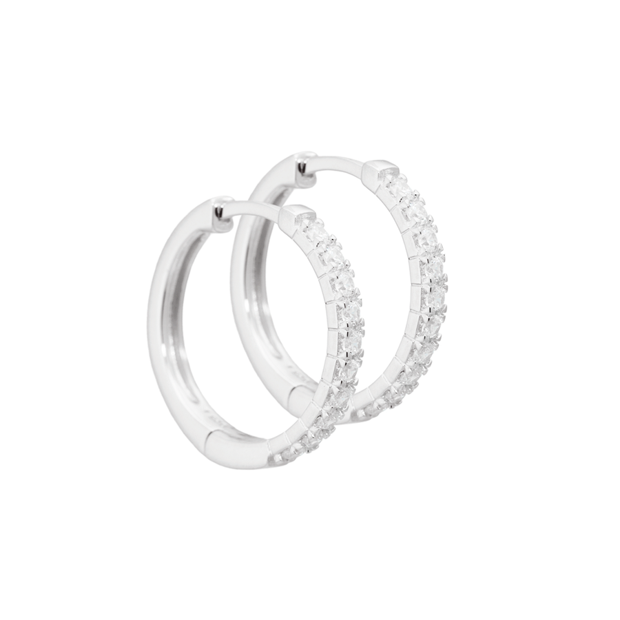 Wunderschöne Creolen aus Silber mit Zirkonia, schön zu kombinieren mit kleinen Nieten, für einen anderen Ausdruck, sie sind von Aqua Dulce.