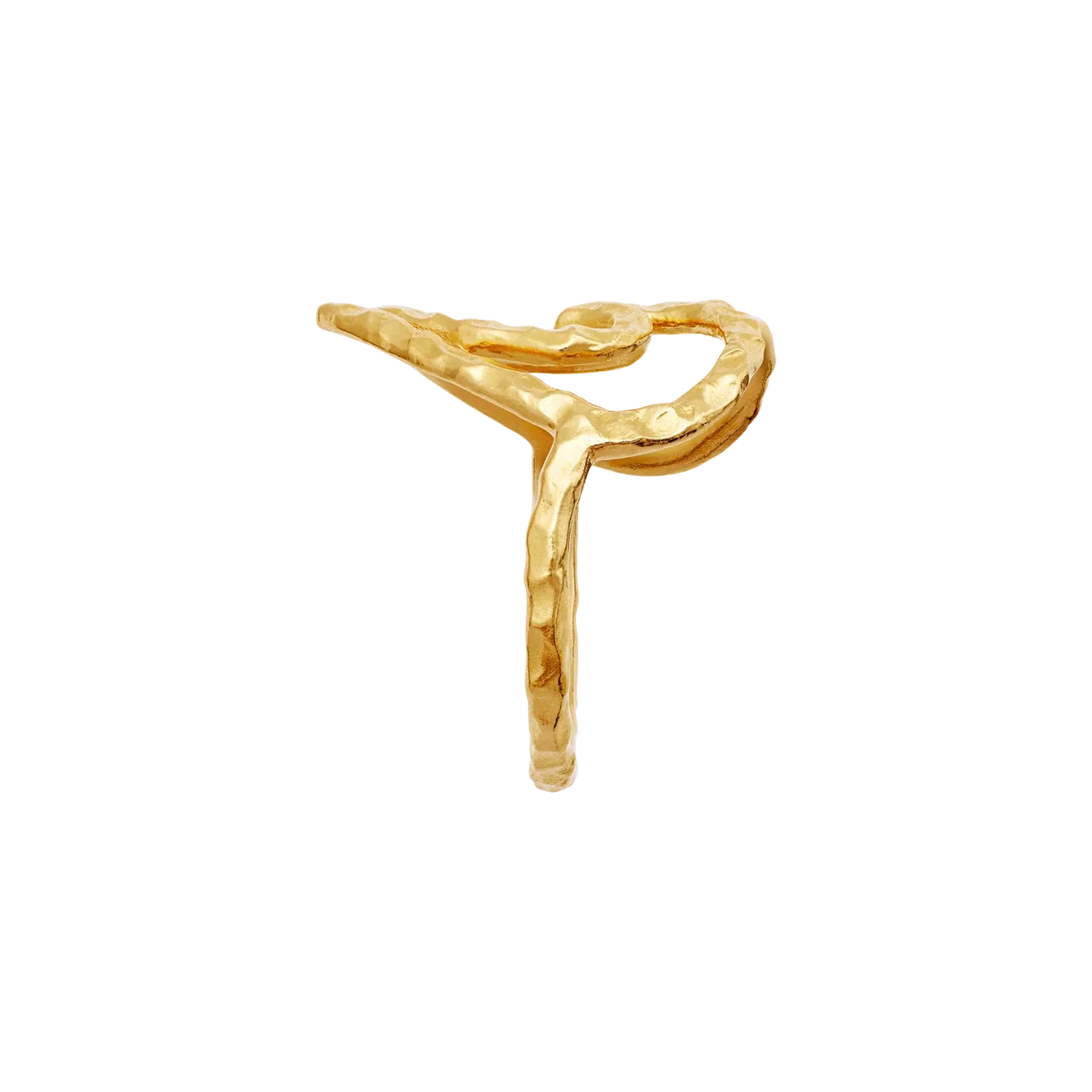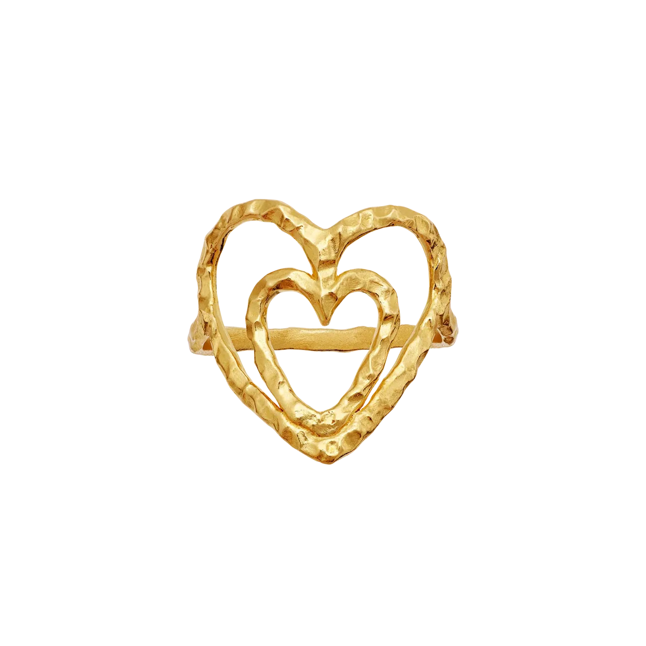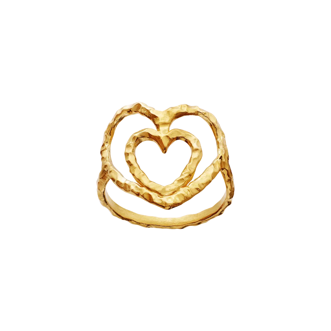 Den let hamrede overflade giver ringen et håndlavet og råt look, som balancerer det feminine hjerte-design med kant og personlighed. Ringen kan bæres alene som et blikfang eller kombineres med andre ringe for et mere moderne og stacked udtryk. En del af Maanesten SS26 kollektionen med fokus på symbolik, følelser og organiske former.