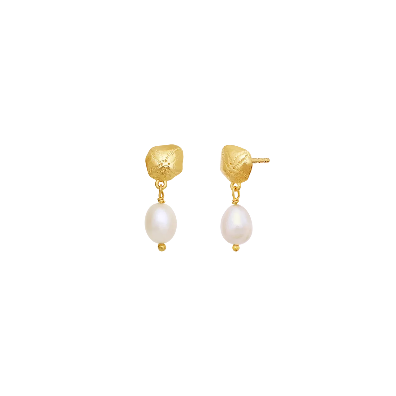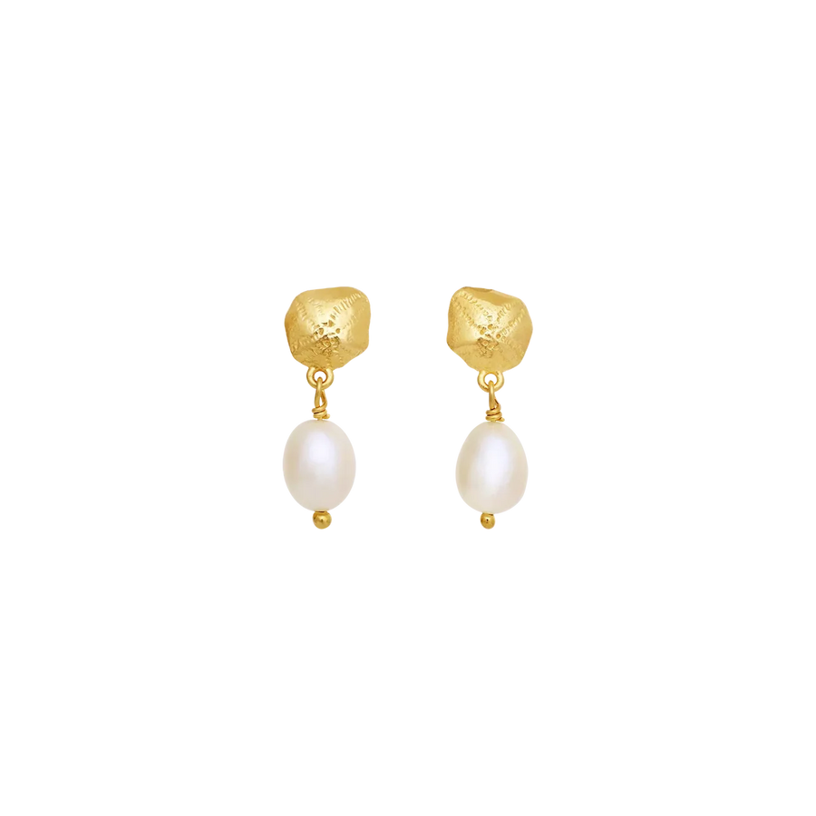 Den fine ferskvandsperle tilfører et blødt og naturligt skær, mens den varme 18 kt. forgyldning giver øreringene en gylden glød og et elegant udtryk. De er lette at bære og passer perfekt til både hverdag og særlige øjeblikke. En del af Maanesten SS26 kollektionen med fokus på nostalgi, symbolik og sommerens lethed.