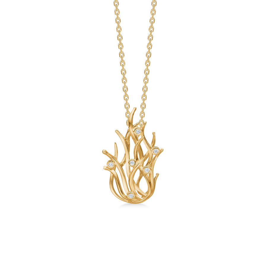 Der Mads Z Reef-Anhänger aus 8 Karat Gold ist von den wunderschönen Korallenformationen des Meeres inspiriert. Das organische Design schlängelt sich elegant und schafft eine lebendige Silhouette, bei der kleine funkelnde Zirkonia als feine Lichtblitze zwischen den weichen Ästen eingerahmt sind.