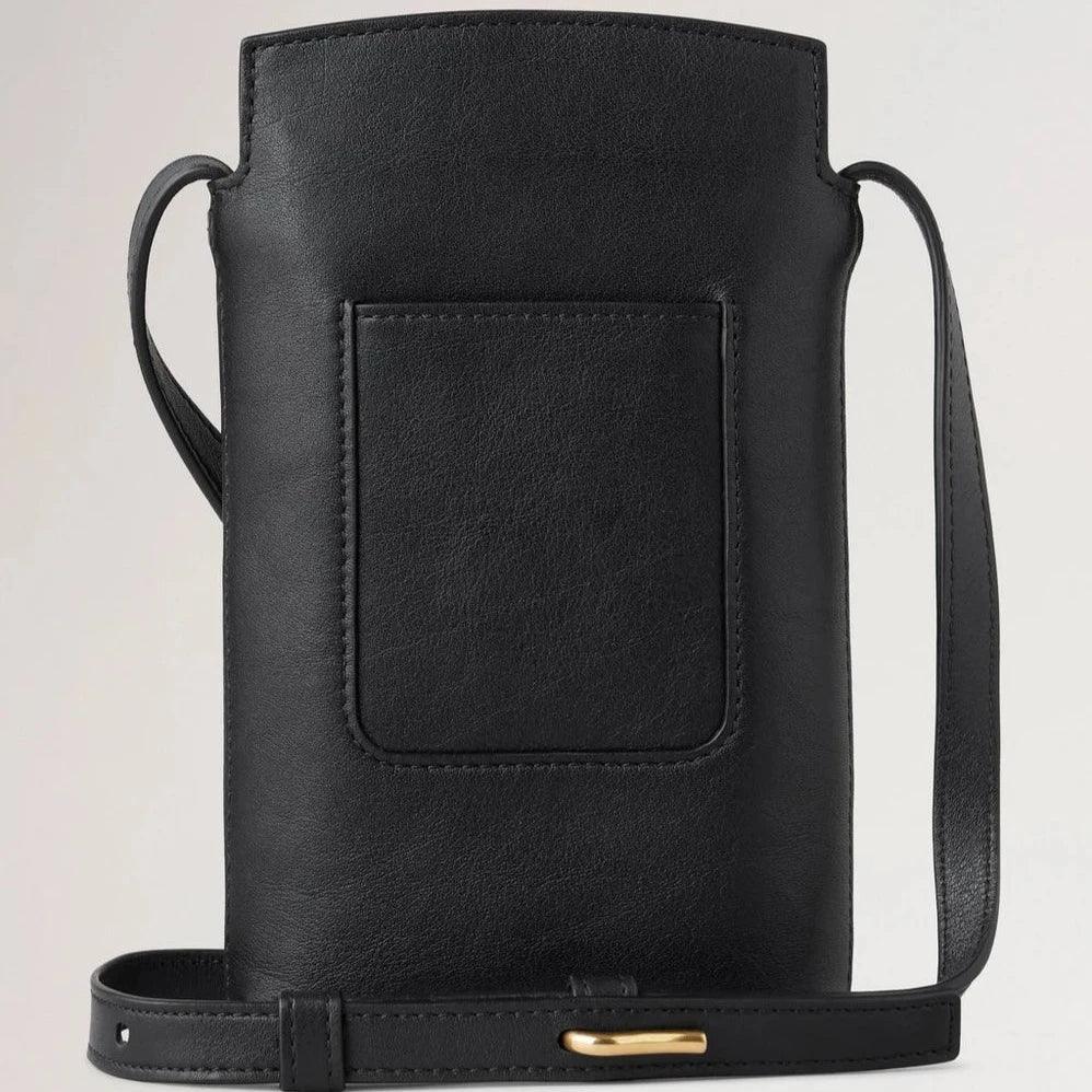 Mulberry Clovelly Handyhülle aus schwarzem, raffiniertem, flachem Kalbsleder