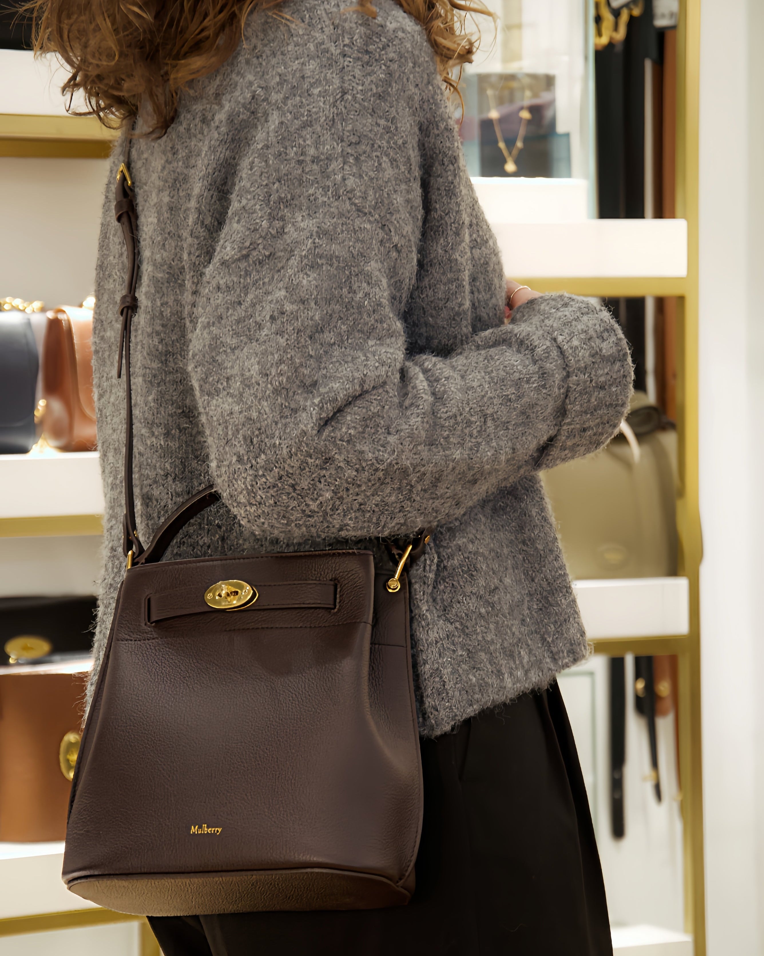 - Details: Messing -Hardware, geprägteres Mulberry -Logo im Inneren
