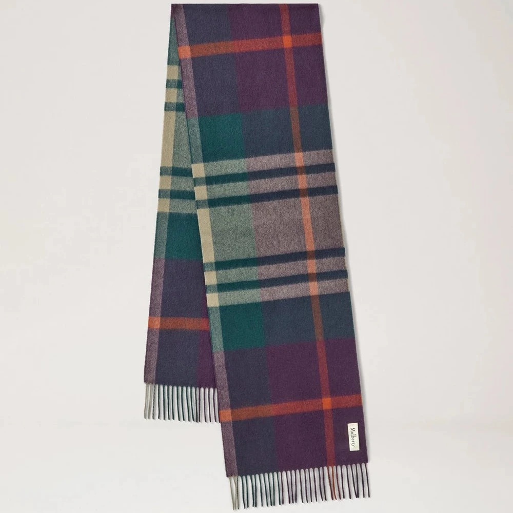 Das zeitlose Karomuster und die feinen Fransen an den Enden sorgen für einen stilvollen und raffinierten Look, während die Stickereien MulberryDas Logo sorgt für ein exklusives Finish. Ein unverzichtbares Accessoire, das sowohl zum Alltag als auch zu eleganten Anlässen passt.