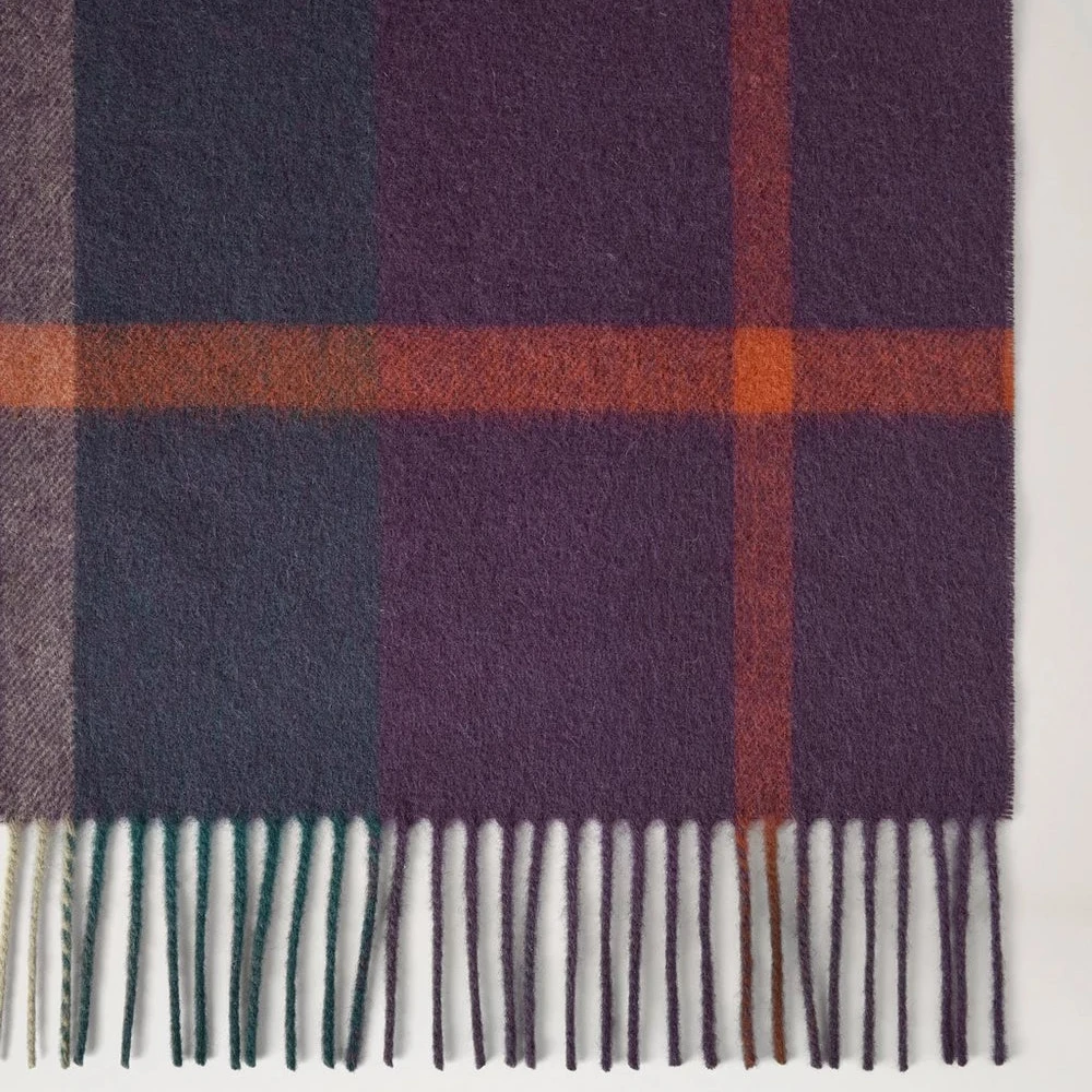Das Elegante Mulberry Der kleine karierte Schal aus Merinowolle in der Farbe Juniper Green & Deep Aubergine ist ein klassischer Webschal, der britische Tradition mit luxuriösem Komfort verbindet. Der aus 100 % Merinowolle gefertigte Schal ist weich, warm und leicht zugleich – perfekt für die kühleren Monate.