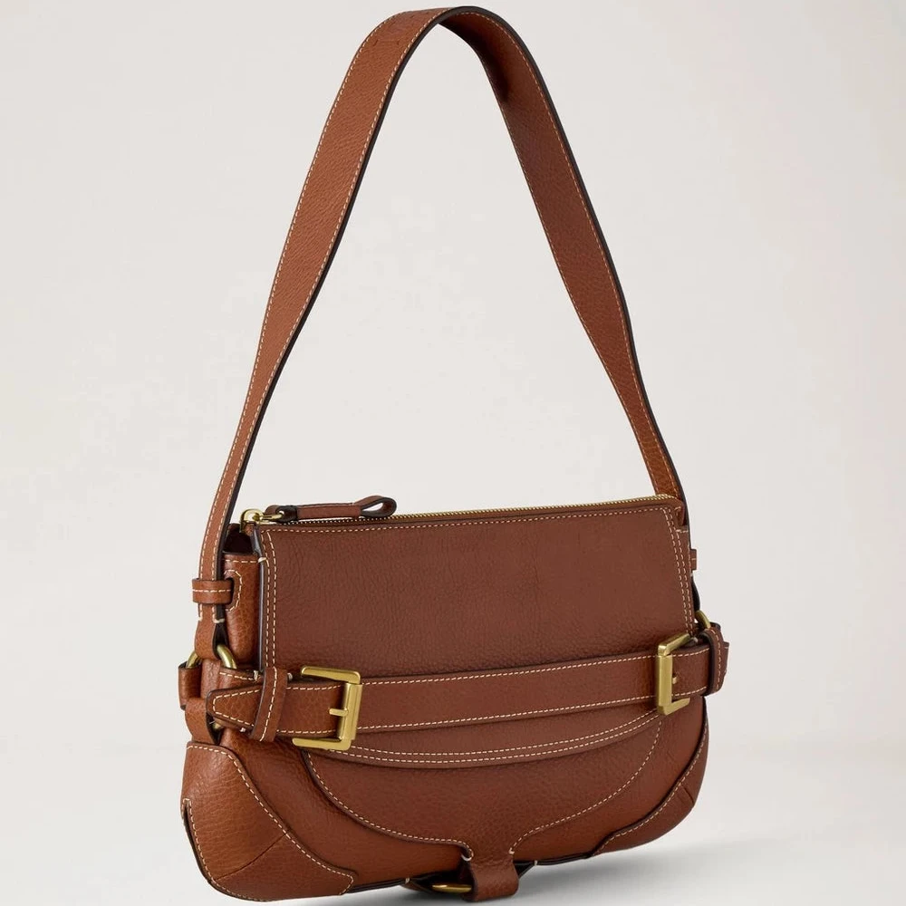 Mulberry Lennox Umhängetasche in Heritage NVT Eiche ist eine moderne und raffinierte Interpretation der vom Archiv inspirierten Tyler-Tasche. Hier erhalten Sie eine klobige Umhängetasche mit viel Charakter, bei der die ikonischen Mulberry-Details mit einem raueren und rebellischeren Ausdruck kombiniert werden. Die markanten Gürtel- und Schnallenelemente verleihen der Tasche einen kantigen Look, während die Ringdetails die Dynamik des Designs unterstreichen.