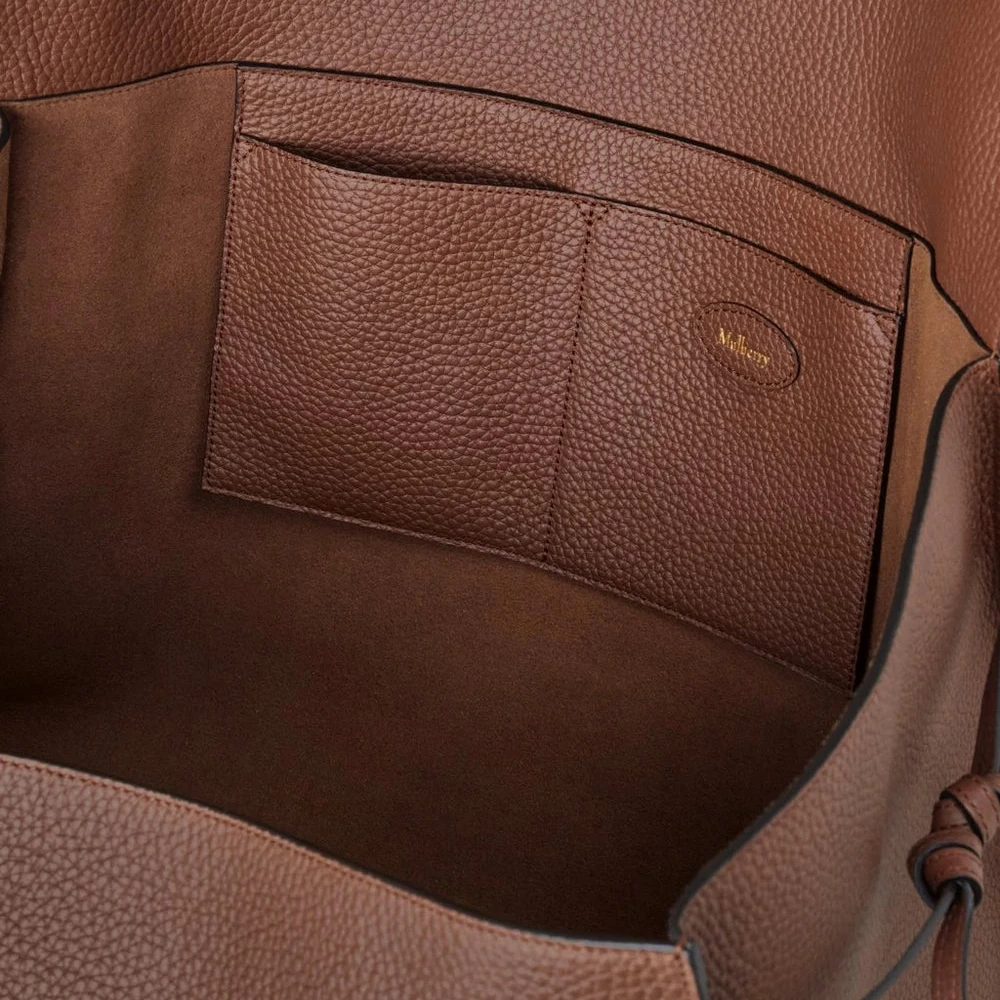 • Details: Quastendetails an den Seiten, foliertes Mulberry-Logo, Lederhalter am Griff, Mikrofaserfutter