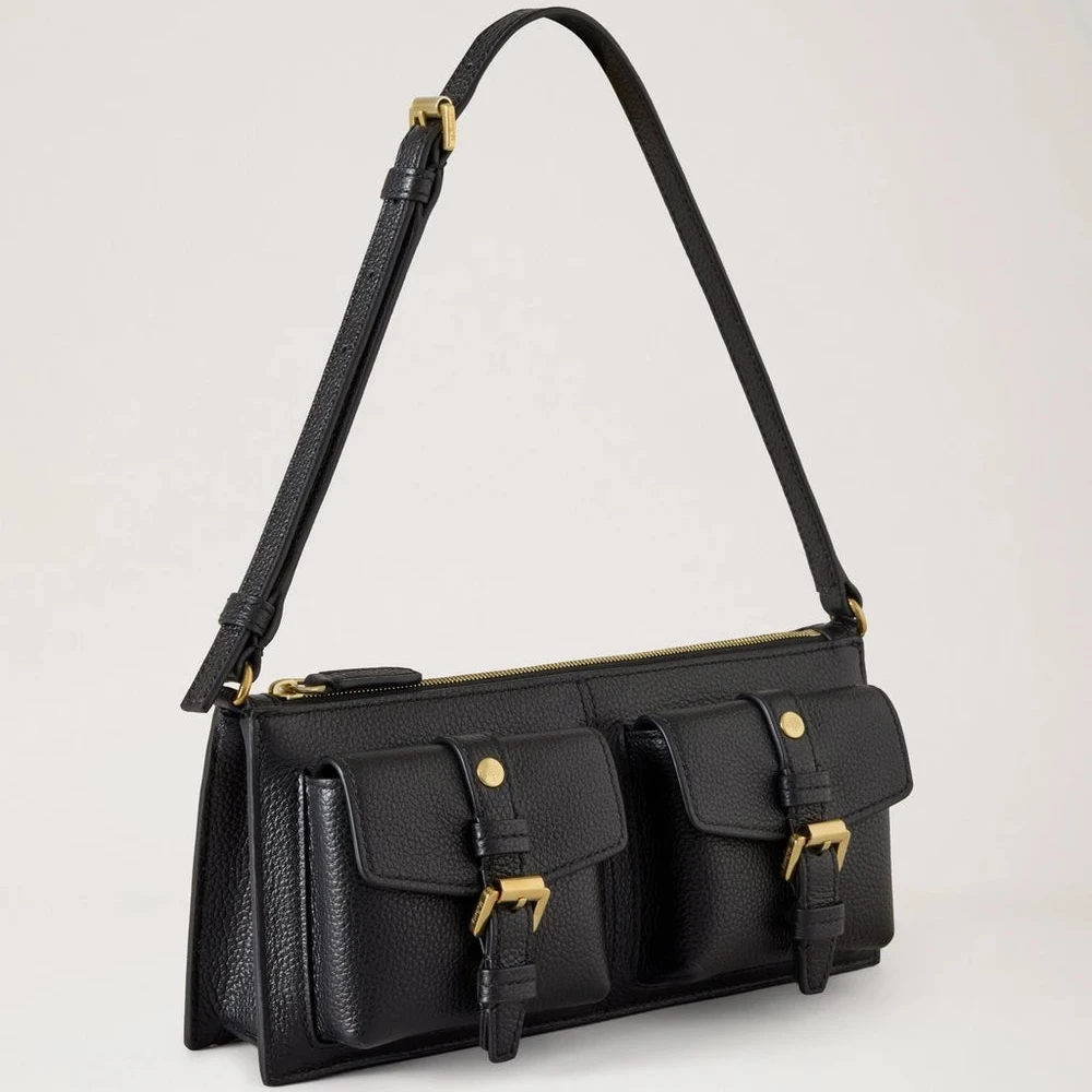 Diese Mini-Umhängetasche ist aus Small Classic Grain-Leder gefertigt, einem weichen und strapazierfähigen Leder mit einer schönen geprägten Textur, die ihr einen exklusiven und zeitlosen Look verleiht. Die beiden Fronttaschen mit Magnetverschluss eignen sich perfekt für Kleinigkeiten, während das Hauptfach mit Reißverschluss Ihre wichtigsten Habseligkeiten sicher an Ort und Stelle hält. Mit dem verstellbaren Riemen kann die Tasche über der Schulter getragen werden und die messingfarbenen Details sorgen für einen eleganten Touch.