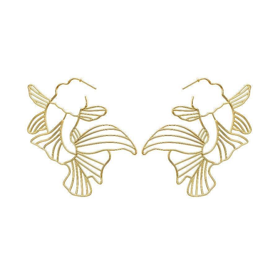 Wunderschöner und detaillierter Creolen aus der Polar Jewelry Sakura-Kollektion aus vergoldetem Silber. Der Koi-Fisch symbolisiert Glück, Glück und Wohlstand.