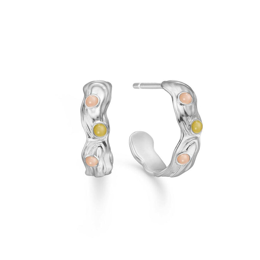 Diese Creolen entspringen den organischen Formen der Natur und verbinden Eleganz mit minimalistischem Geist. Der silberne Rahmen umschließt die Rundungen des Ohrs und sorgt für einen zeitlosen Ausdruck, der zu jedem Anlass passt.