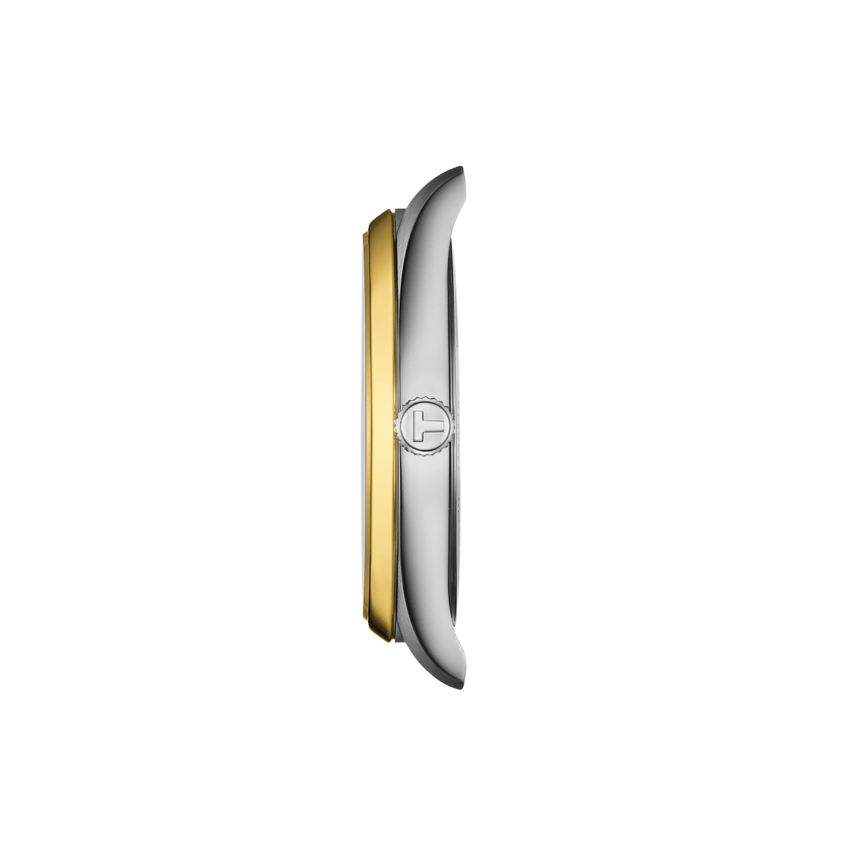 Tissot PR 100 40mm er en af Tissots mest populære modeller – kendt for sin præcision, robusthed og høje vandtæthed. Denne to-tone udgave kombinerer 316L rustfrit stål med guldfarvet PVD-belægning, hvilket giver et elegant, luksuriøst og tidløst udtryk.