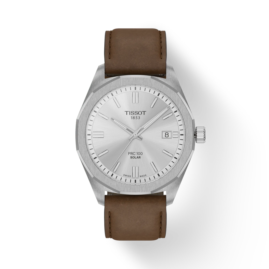 TISSOT PRC 100 SOLAR QUARTZ 39MM braunes Lederarmband: