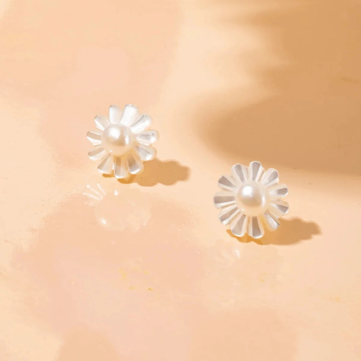 Vincent Venus Daydream Dot Pearl Ohrringe vergoldet – Blumenohrstecker aus Perlmutt und Süßwasserperlen: