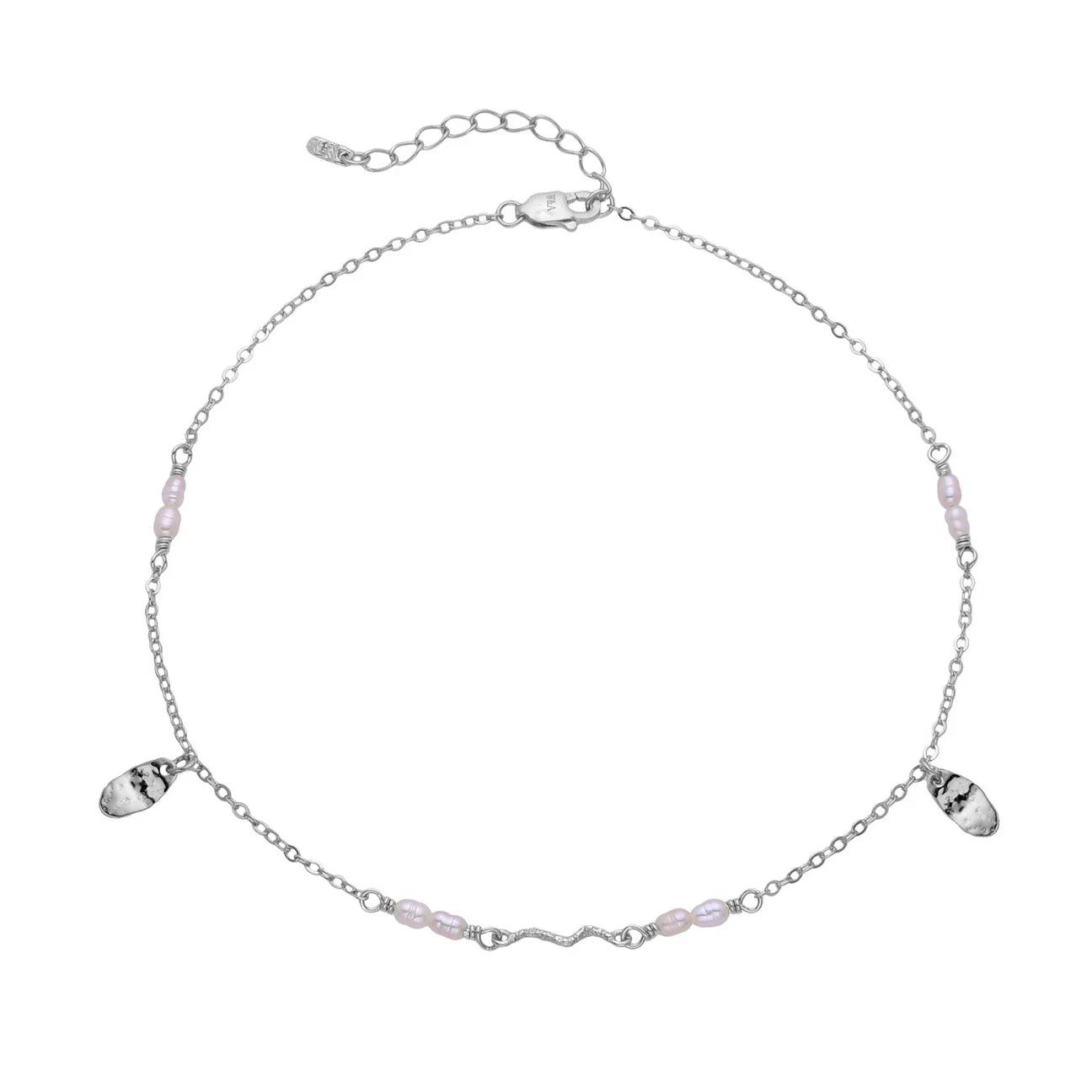 Sabbie Knöchelkette von WiOGA mit wunderschönen Süßwasserperlen in Silber: